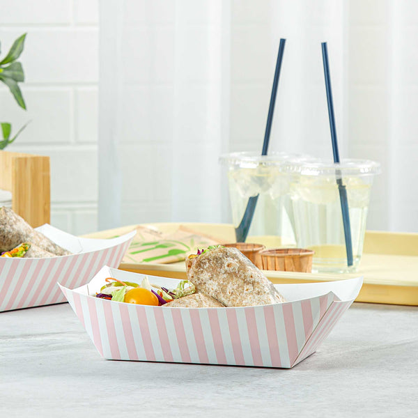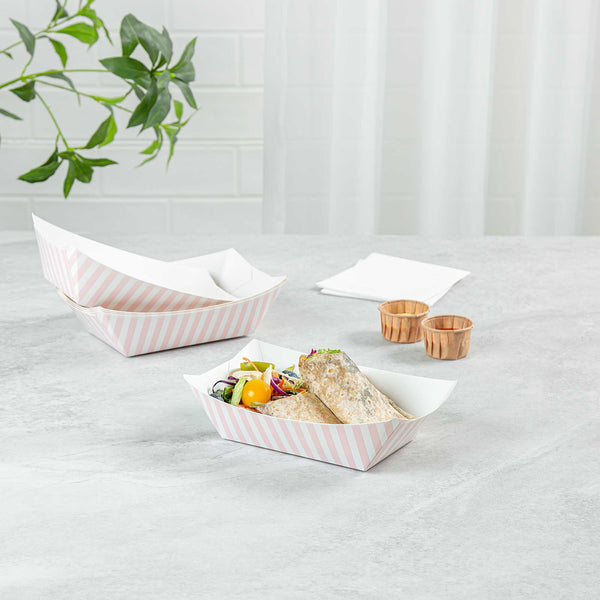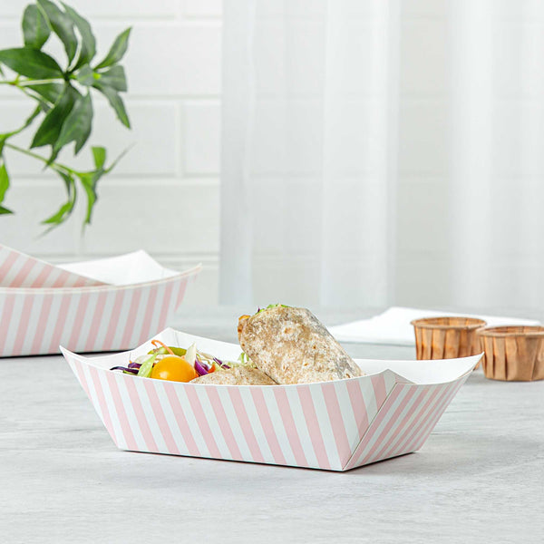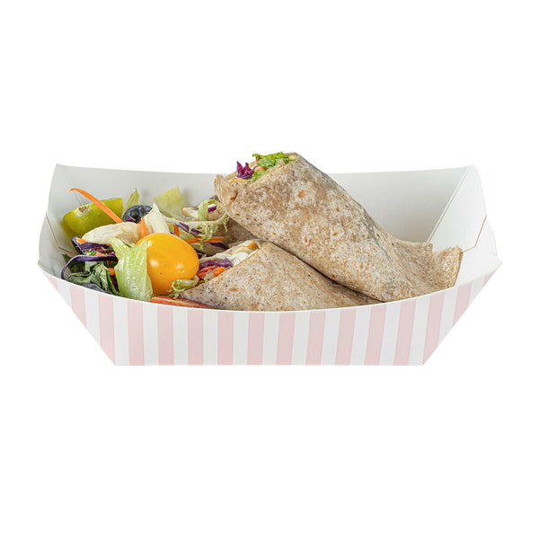 1 LB PINK AND WHITE STRIPE PAPER #100 FOOD TRAY / BOAT
