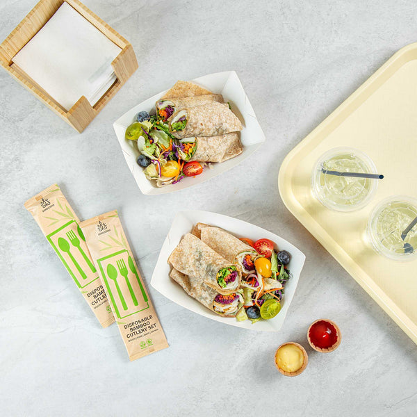 - Sturdy paper supports hefty portions of hot and cold foods