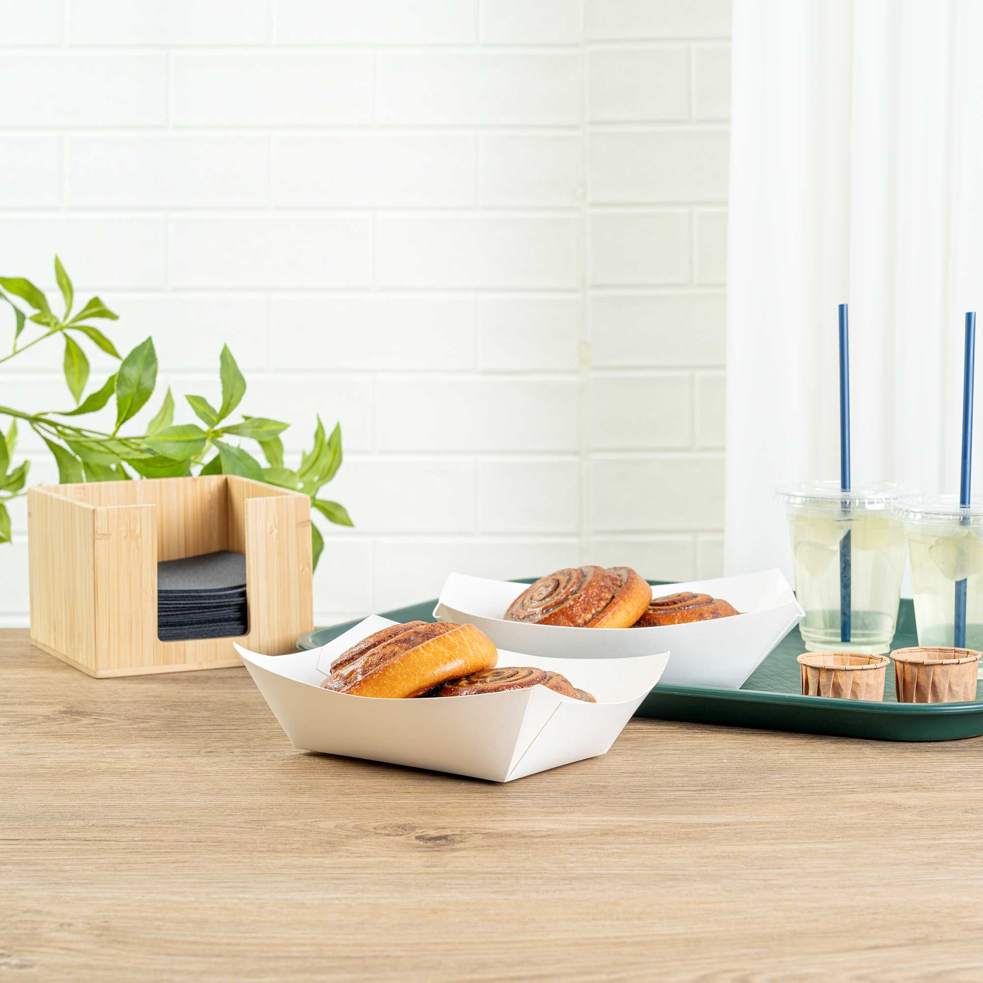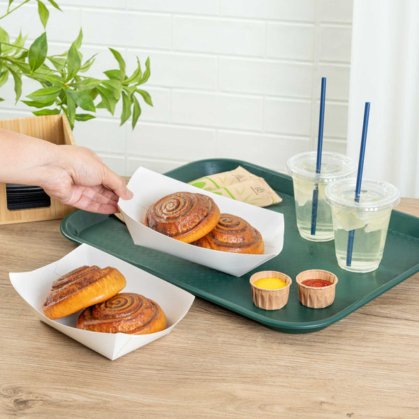 With numerous options to choose from, these paper food trays come in multiple colors to complement all kinds of food service establishments. Pick the paper boat that best fits your aesthetic!