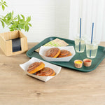 These paper burger trays have a tough PE lining to avoid oils or grease from seeping through. Great for serving french fries or crispy chicken wings!