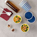 The PE-lined interior of these disposable takeaway containers is specifically designed to avoid grease and oil from seeping through, ensuring rich broths and sauces are transported without messes. This innovative lining ensures a cleaner experience for customers.