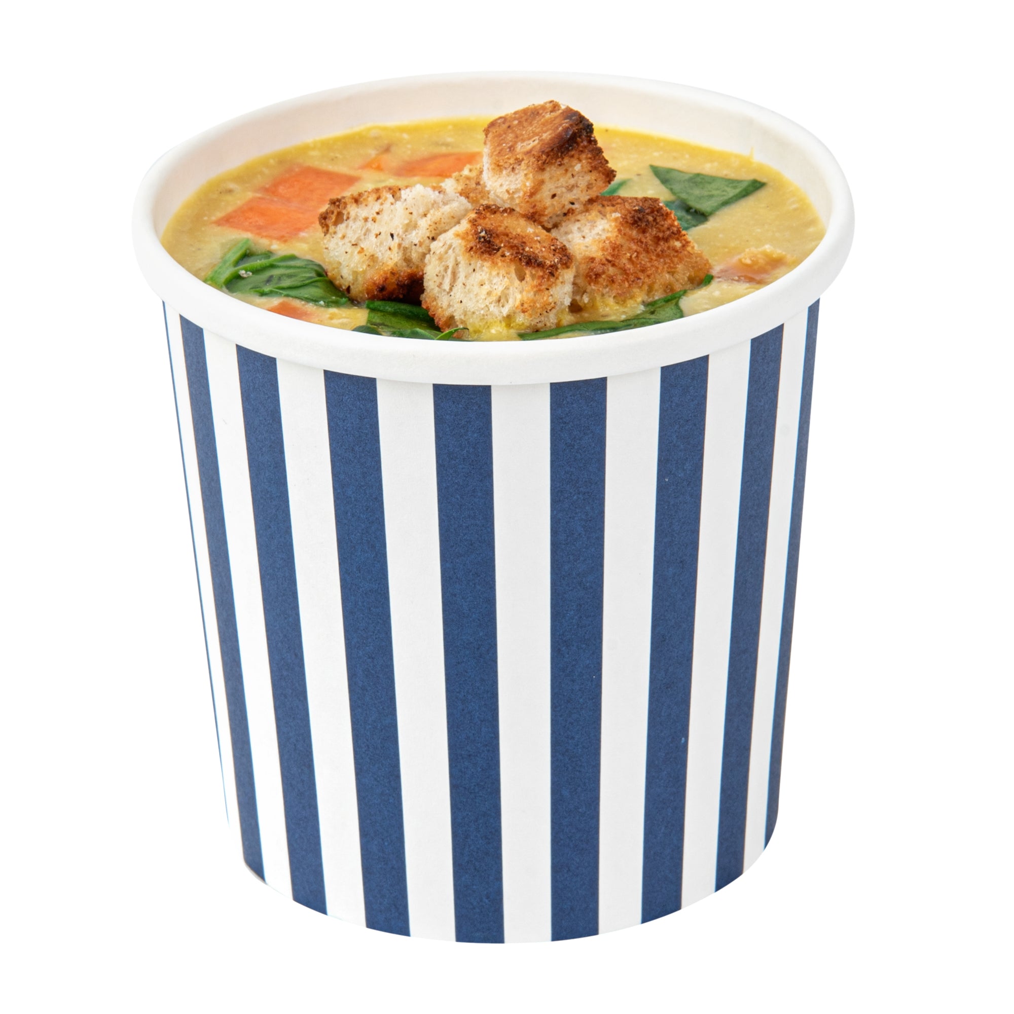 12 OZ ROUND BLUE AND WHITE STRIPE PAPER SOUP CONTAINER