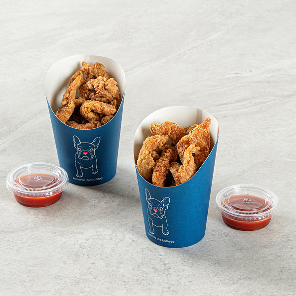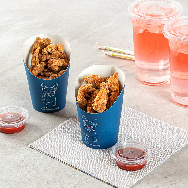 Upgrade the way you serve snacks with our Bio Tek 12-ounce Round Frenchie Paper Incline Cups. Constructed with a greaseproof lining, these incline cups maintain a clean appearance, enhancing visual presentation. The broad, incline rim feature of these paper incline cups enables easy collection of fries from warmers. Made with high-grade paper, customers can conveniently handle these french fry holders, setting them standstill while relishing their meals. The sophisticated Frenchie finish of these disposable fry containers gives an elegant touch to your fries and side dishes. These snack cups are stackable, facilitating an organized storage area. Each recyclable frenchie fry cup measures 3.5 in diameter by 4.75 in height and can contain 12 ounces of snacks. Sold in a 100 count box.
