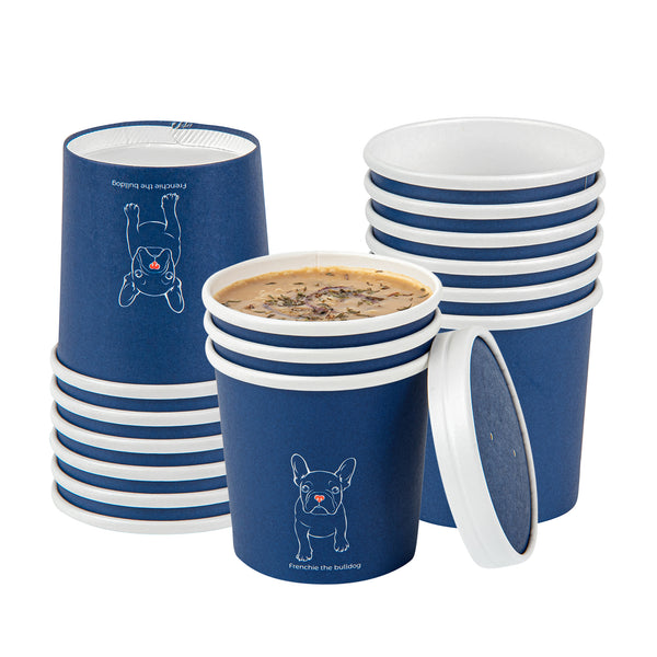 Crafted from sturdy paper that withstands both hot and cold foods, these paper soup containers are versatile. They retain their shape and are freezable.