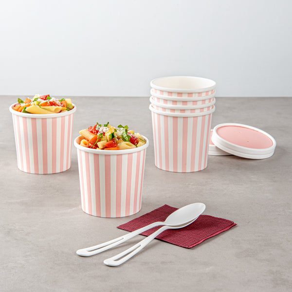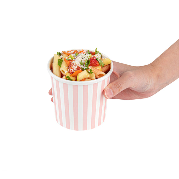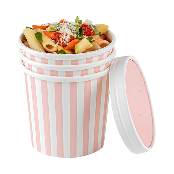 12 OZ ROUND PINK AND WHITE STRIPE PAPER SOUP CONTAINER