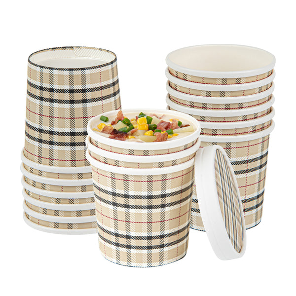 12 OZ ROUND PLAID PAPER SOUP CONTAINER