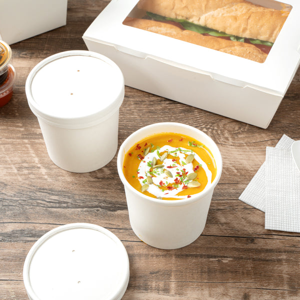 Choose from our boxes with tab lock closures to keep hot meals warm and tasty while on the go. For sealing in soups or sides, our round containers have compatible lids that are available and sold separately.
