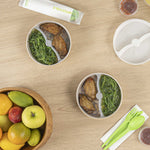 - 2-compartment design ensures distinct flavors and pristine presentation