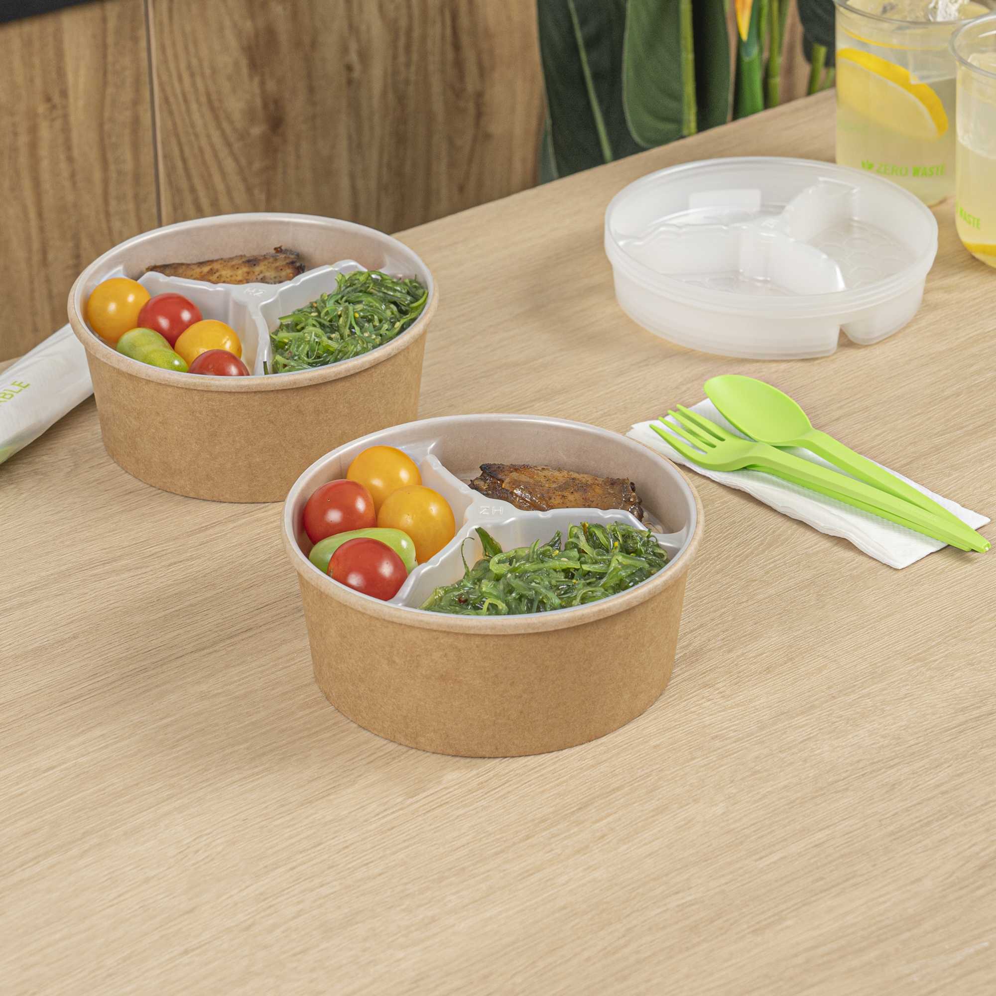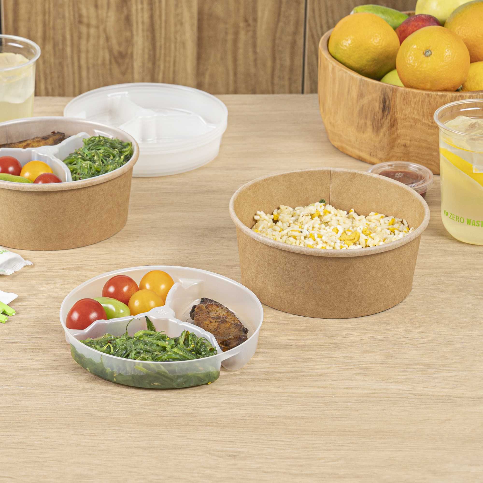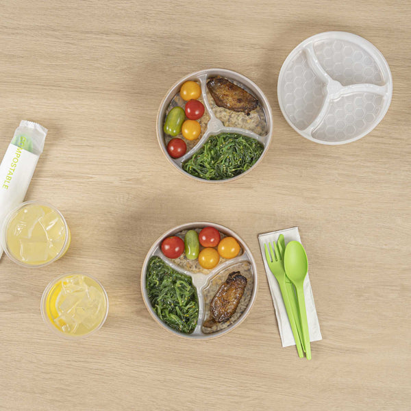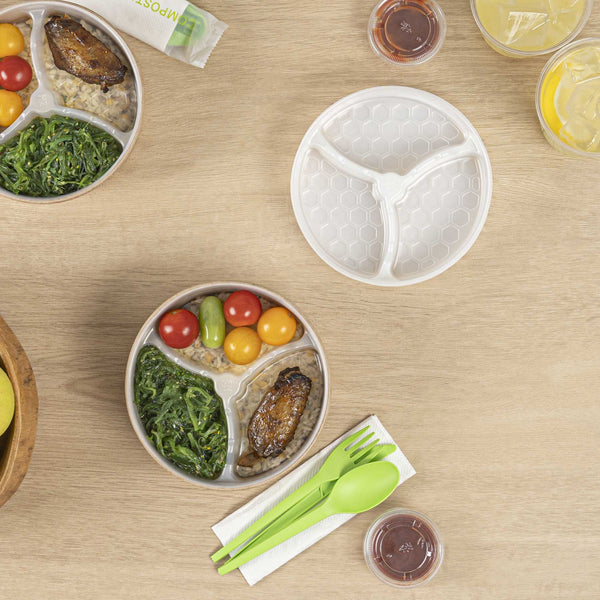 Elevate your food presentation and transport with our Bio Tek 15-ounce White Plastic 3-Compartment Insert Trays. Designed with 3 compartments, these cafeteria trays offer options for serving and separating different foods with ease. These food trays pair with our collection of matching Bio Tek take out containers for a perfect fit and organized food transport. Designed to be microwavable, these insert trays allow you to easily reheat your meals without hassle. Made from premium plastic, these catering trays are suitable for serving both hot and cold food items. For easy cleanup, these serving trays are disposable and can be discarded after use. These disposable serving trays are recyclable, offering an environmentally friendly way to serve meals. Measuring 6.5 inches in length by 6.5 inches in width by 1 inch in height, these white trays have a capacity of 15 ounces. Sold in a 200 count box. Containers are available and sold separately.