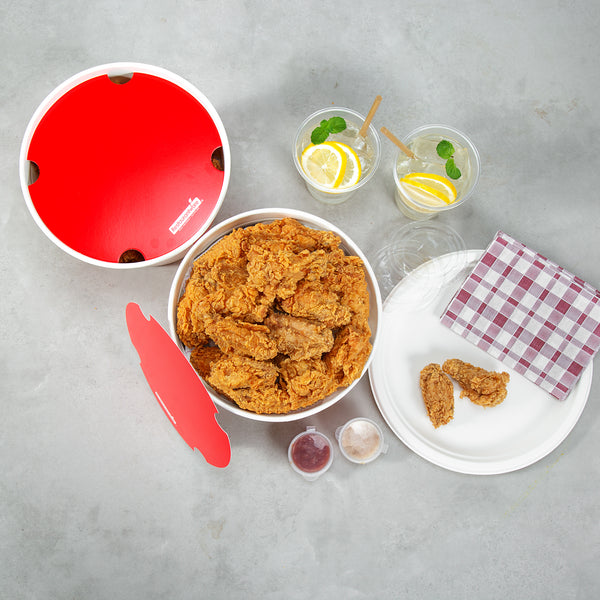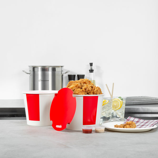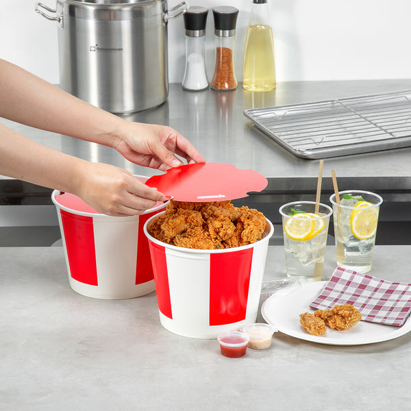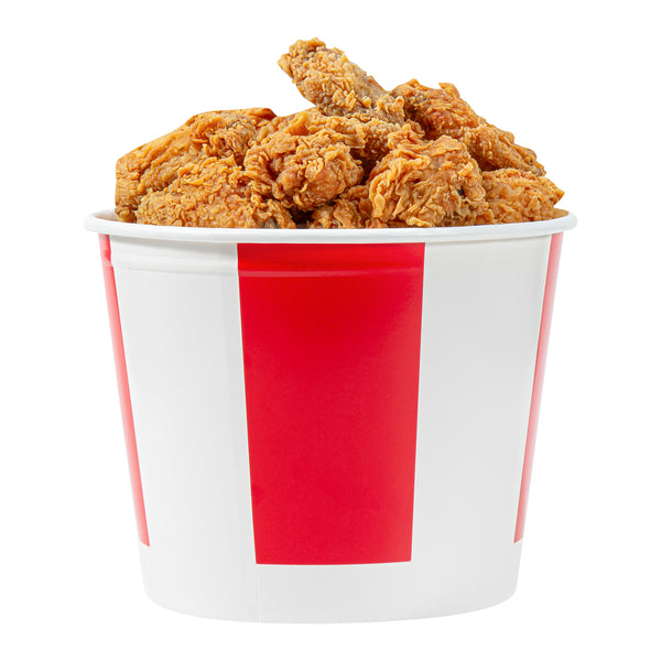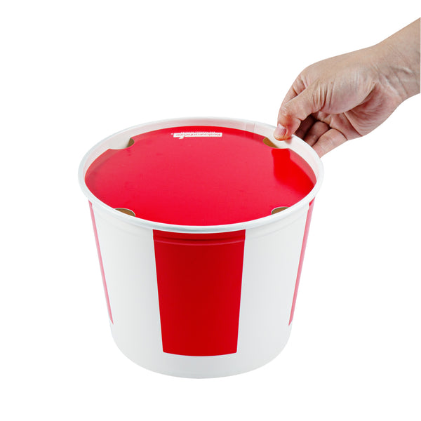 150 OZ RED AND WHITE PAPER CHICKEN BUCKET - WITH LID