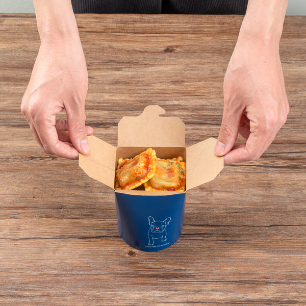 These takeaway boxes are made from thick paper and can easily hold hot and cold foods. Ideal for packing lunches for work!