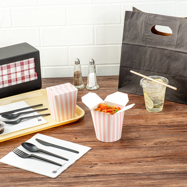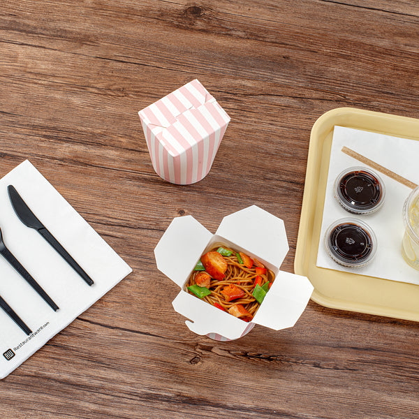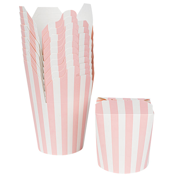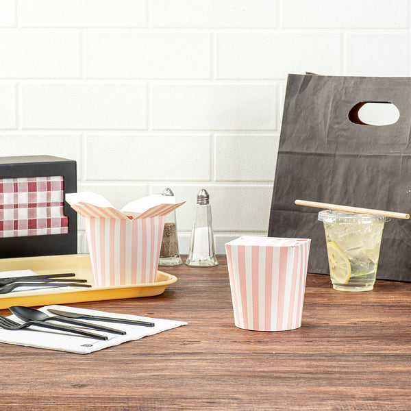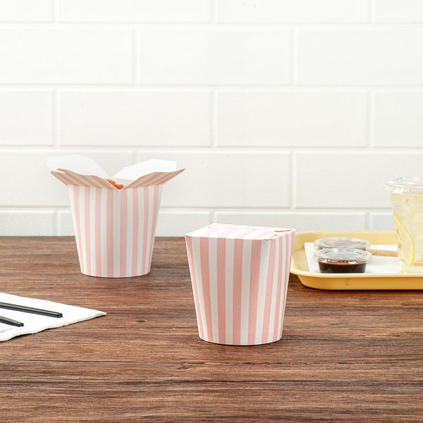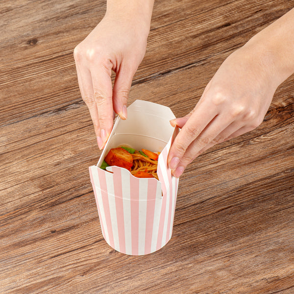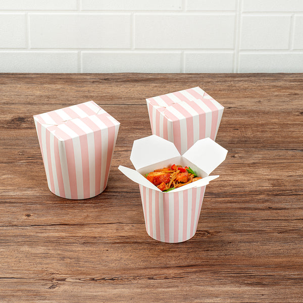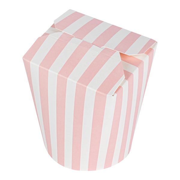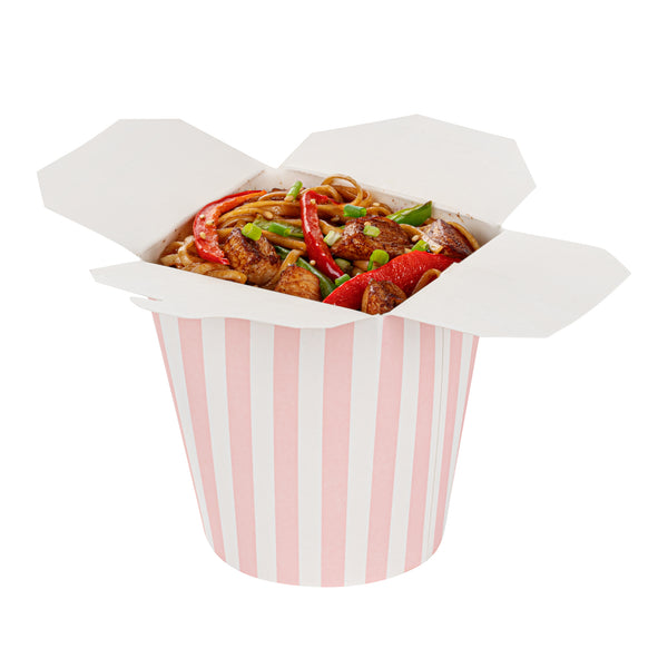 16 OZ ROUND PINK AND WHITE STRIPE PAPER NOODLE TAKE OUT CONTAINER
