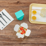 These takeaway boxes are made from thick paper and can easily hold hot and cold foods. Ideal for packing lunches for work!
