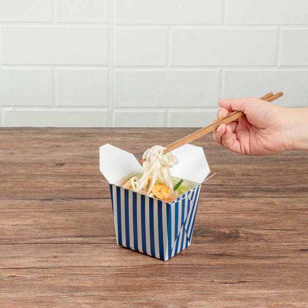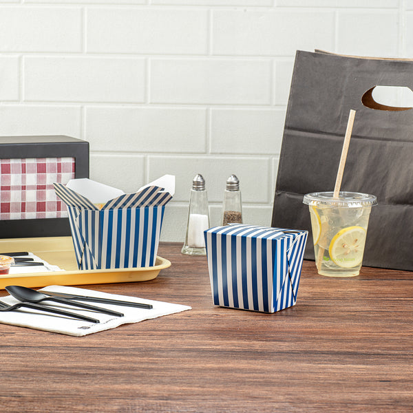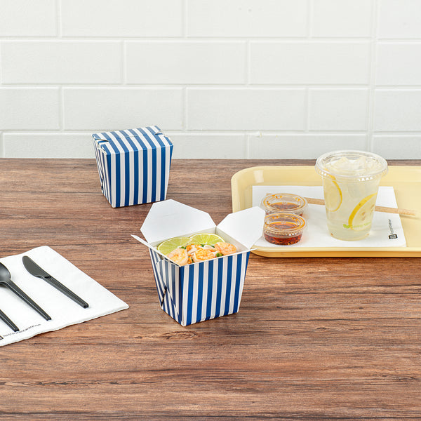 16 OZ SQUARE BLUE AND WHITE STRIPE PAPER NOODLE TAKE OUT CONTAINER