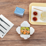 These takeaway boxes are made from thick paper and can easily hold hot and cold foods. Ideal for packing lunches for work!