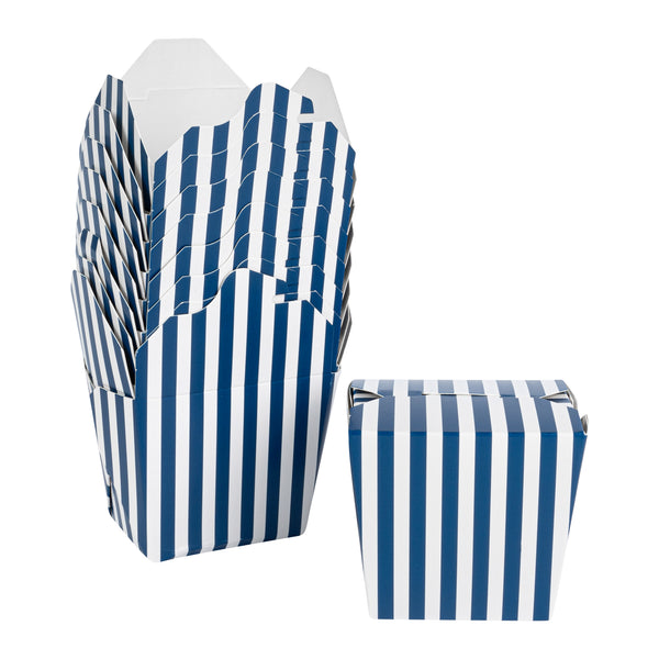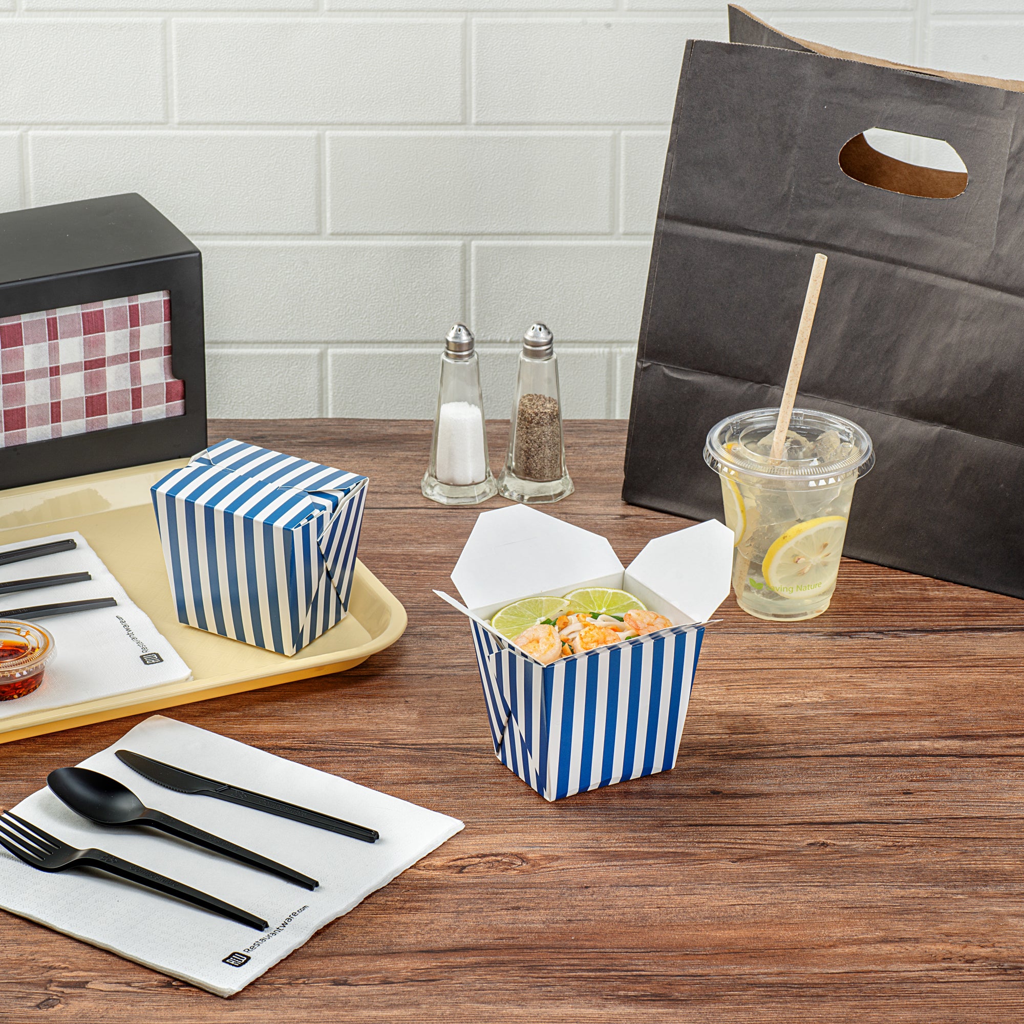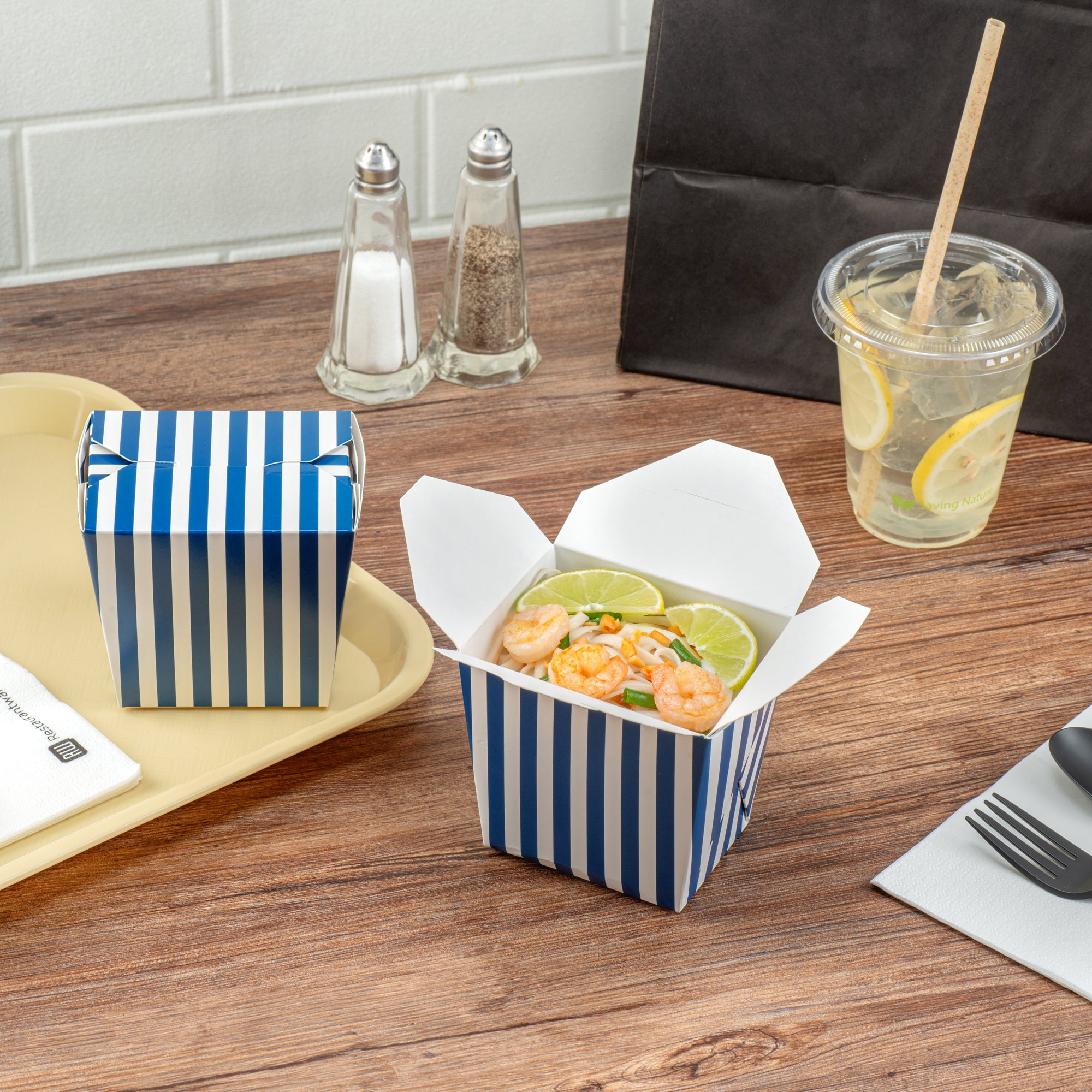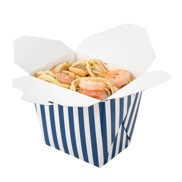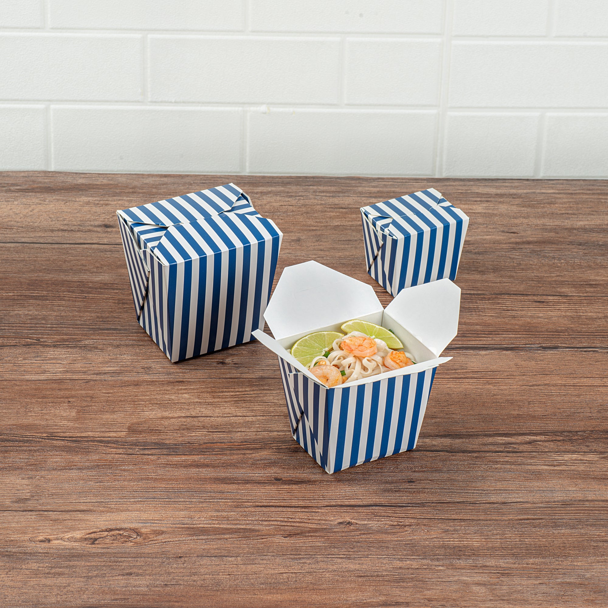 16 OZ SQUARE BLUE AND WHITE STRIPE PAPER NOODLE TAKE OUT CONTAINER