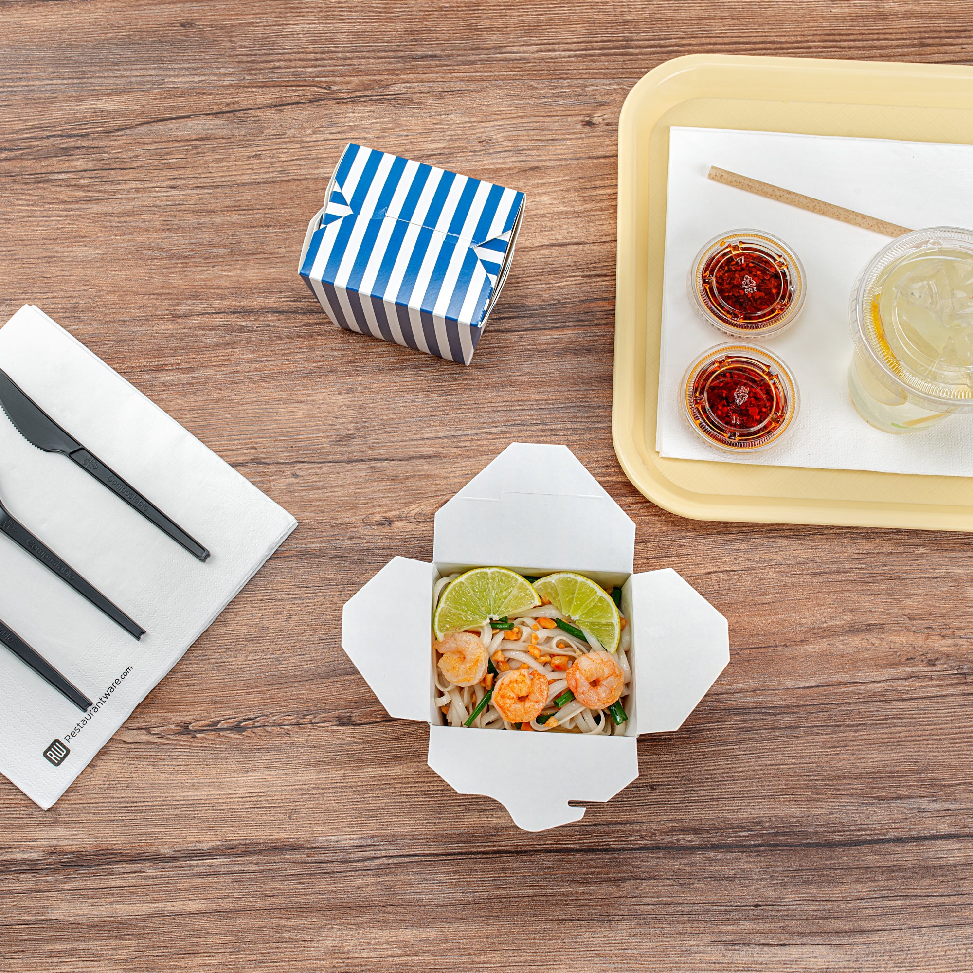 These carry out containers are available in a variety of colors and prints to match with your restaurant’s color scheme or party theme. Add a pop of color to your food packaging orders!