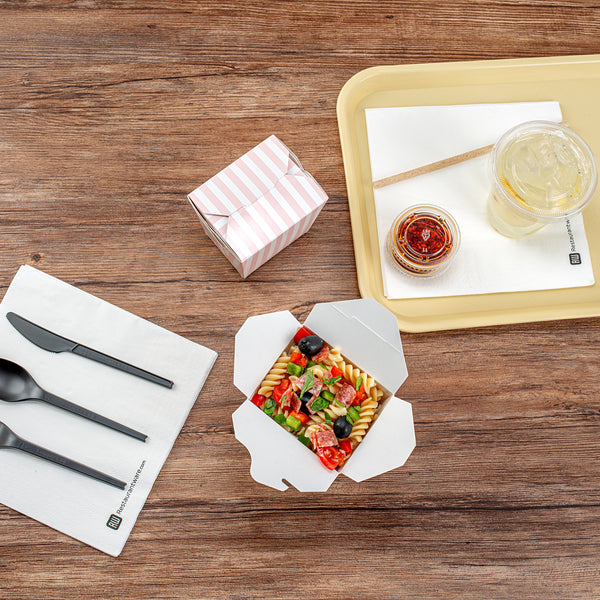 These carry out containers are available in a variety of colors and prints to match with your restaurant’s color scheme or party theme. Add a pop of color to your food packaging orders!