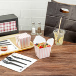 16 OZ SQUARE PINK AND WHITE STRIPE PAPER NOODLE TAKE OUT CONTAINER