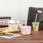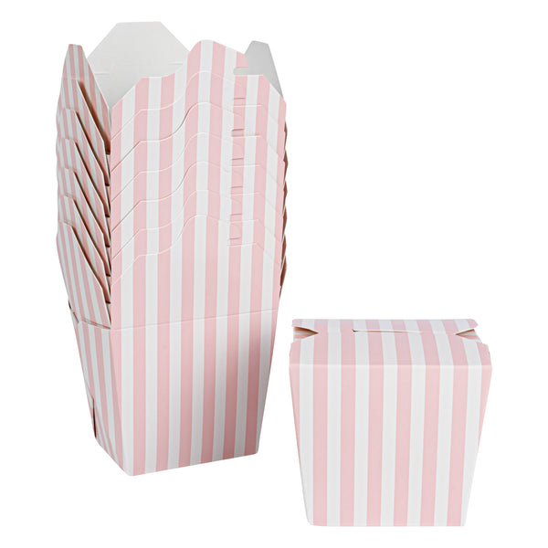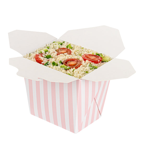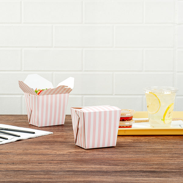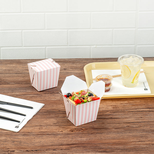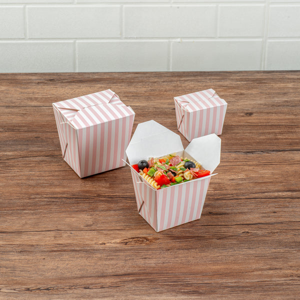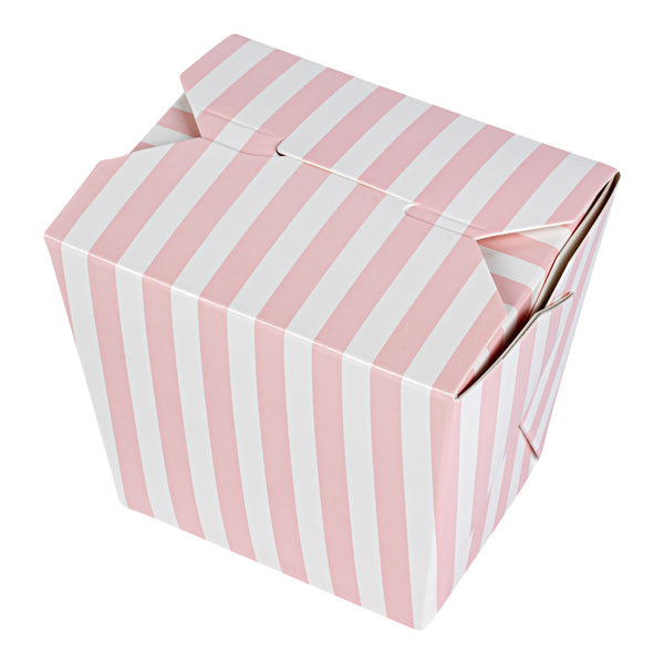 16 OZ SQUARE PINK AND WHITE STRIPE PAPER NOODLE TAKE OUT CONTAINER