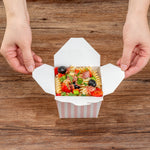 These takeaway boxes are made from thick paper and can easily hold hot and cold foods. Ideal for packing lunches for work!