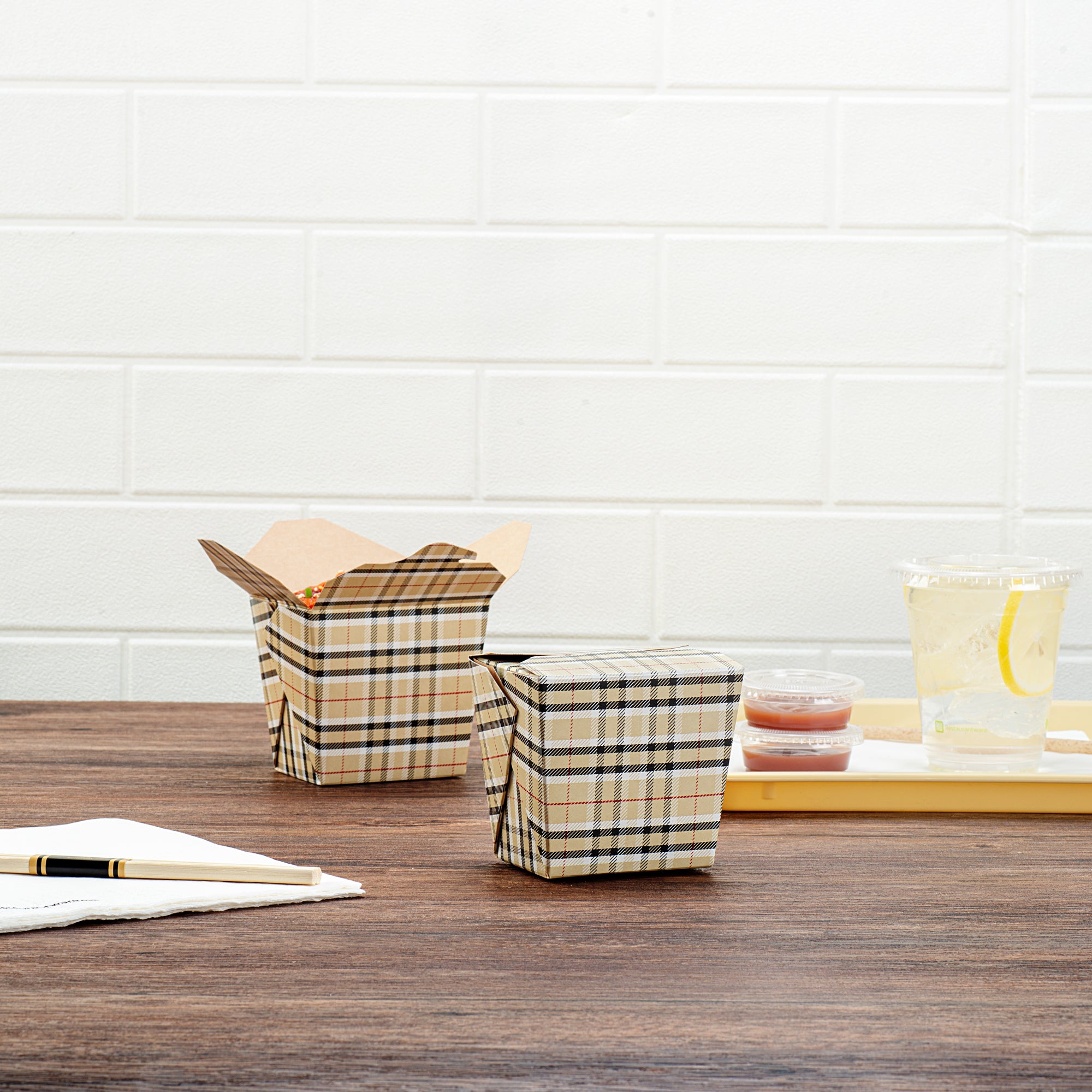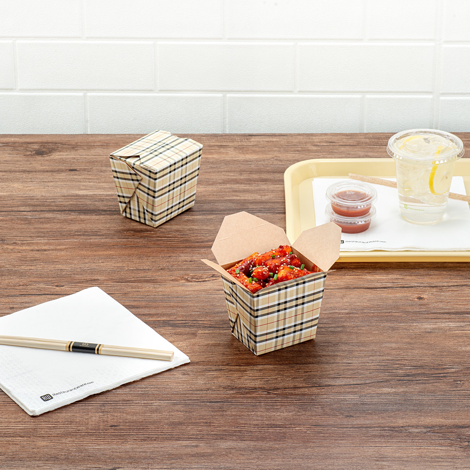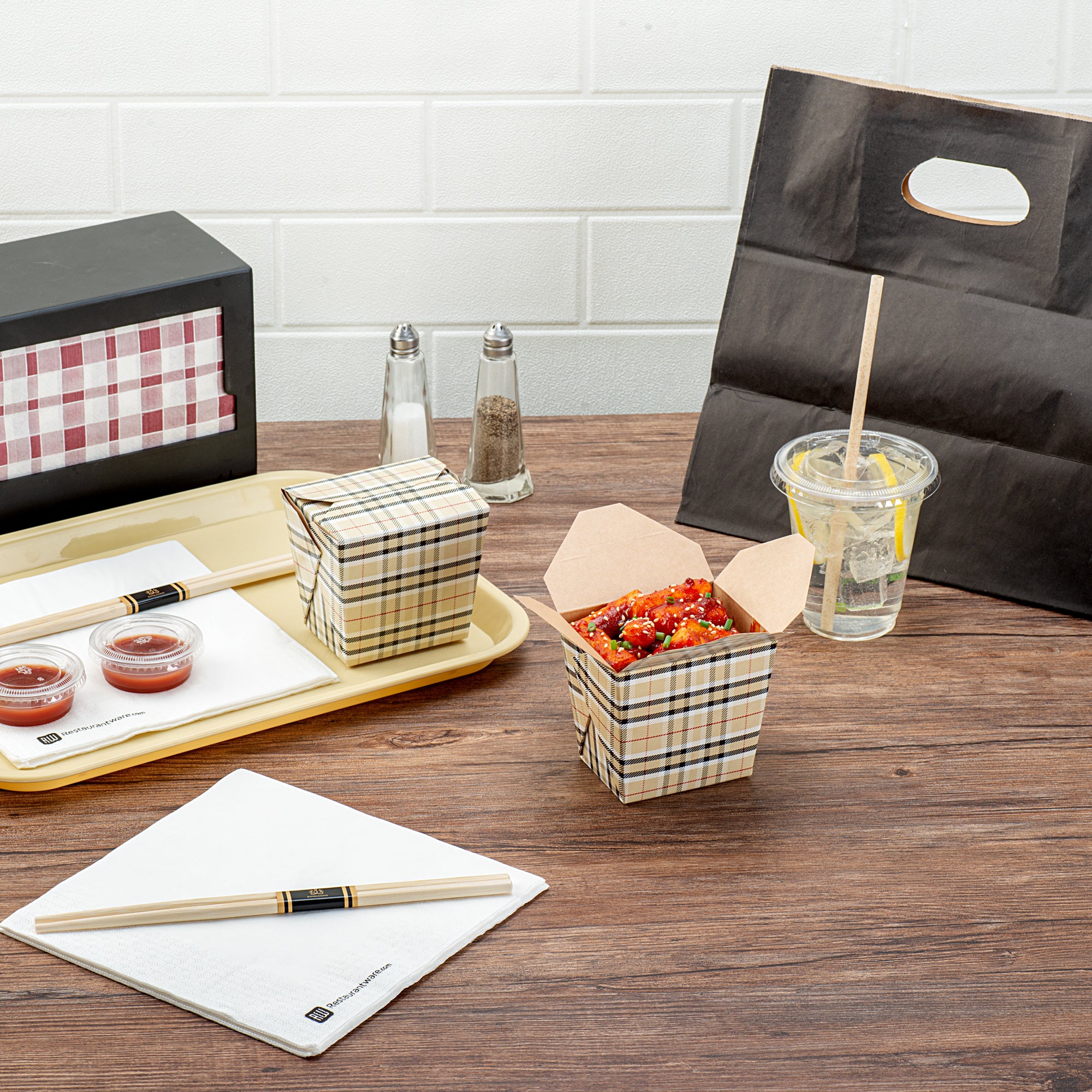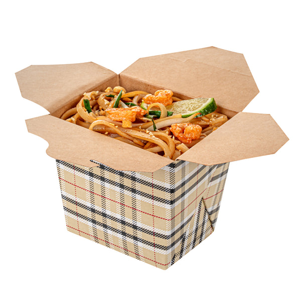 16 OZ SQUARE PLAID PAPER NOODLE TAKE OUT CONTAINER