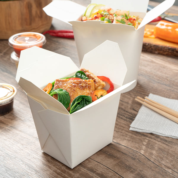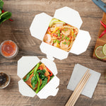 These takeaway boxes are made from thick paper and can easily hold hot and cold foods. Ideal for packing lunches for work!