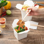 These takeaway boxes are made from thick paper and can easily hold hot and cold foods. Ideal for packing lunches for work!
