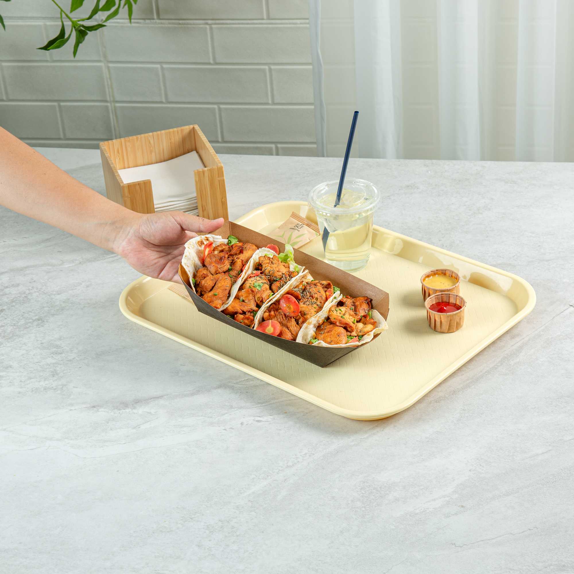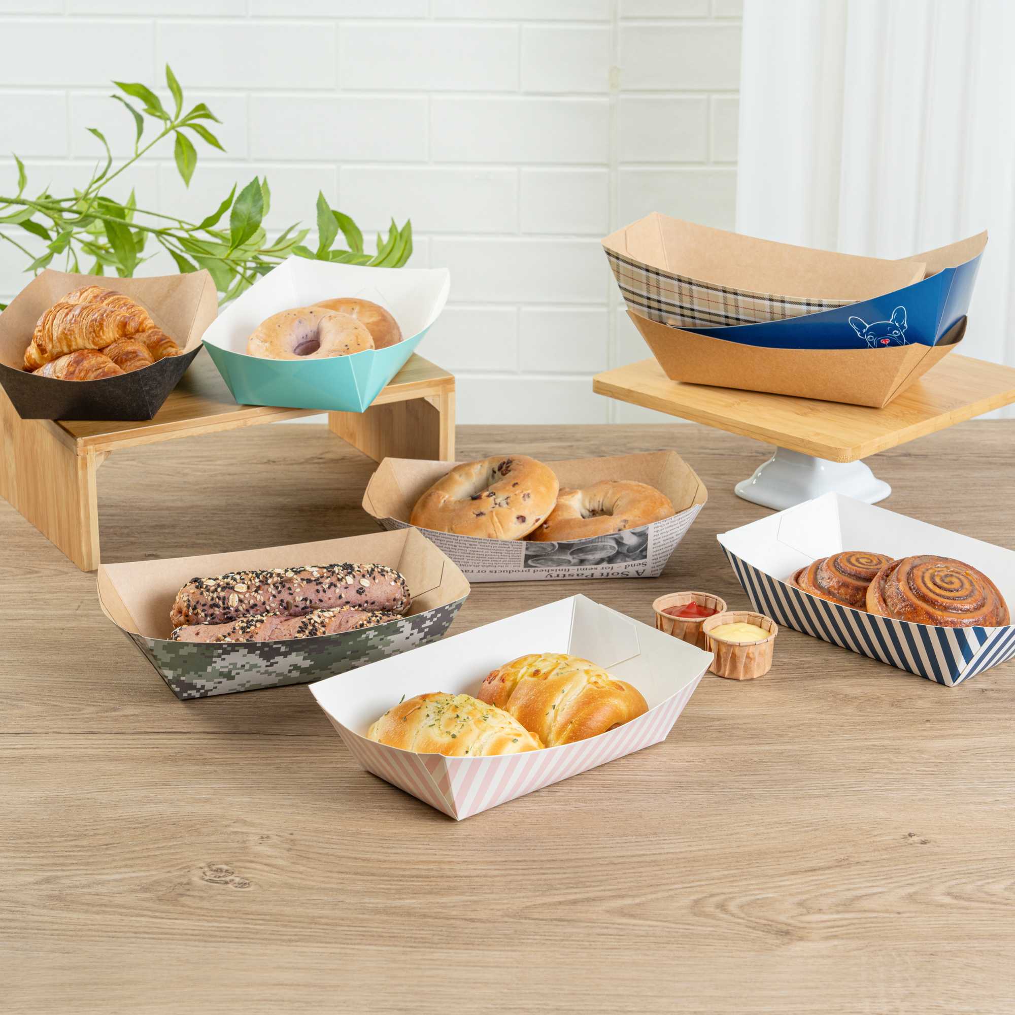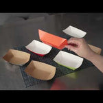 With numerous options to choose from, these paper food trays come in multiple colors to complement all kinds of food service establishments. Pick the paper boat that best fits your aesthetic!