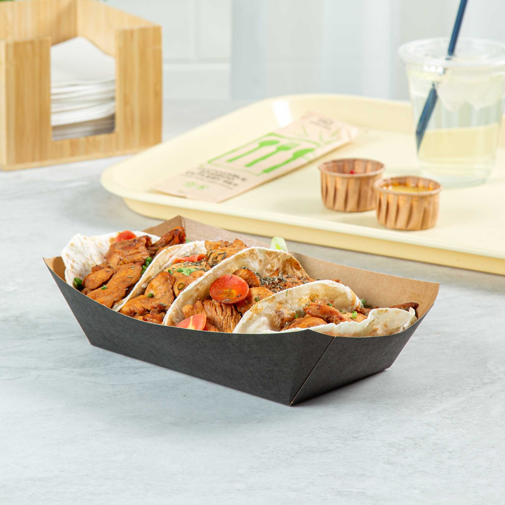 For a simple cleaning process for establishments and guests, these paper food boats are sustainably disposable. Reduce your impact on the environment!