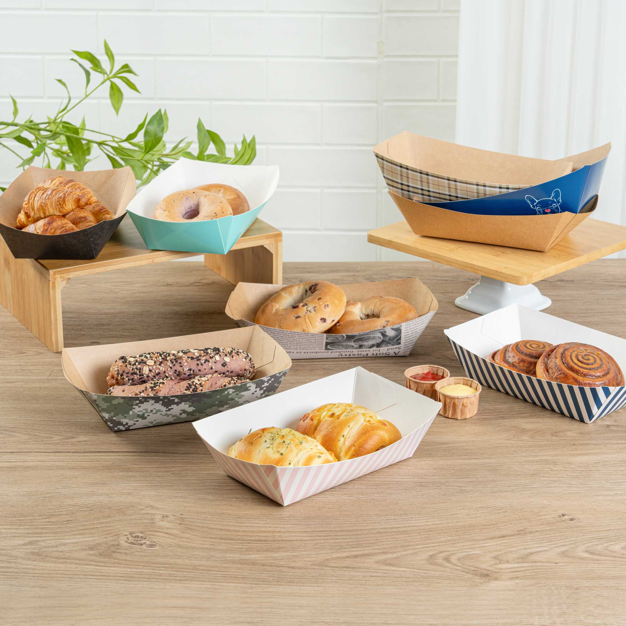 Present your culinary creations in style with our Bio Tek 2-pound Frenchie Paper #200 Food Tray / Boats. Crafted from sustainable paper, these trays add a touch of sophistication to your culinary exhibits. Designed to accommodate hearty portions, these 2-pound sturdy trays are perfect for satisfying appetites. Equipped with a greaseproof lining, they're tailor-made for dishes laden with oil or moisture. From burgers to lobster rolls, Caesar salads, and chicken wings, these #100 paper food trays redefine convenience for take-away dining.Each of these paper food trays measures 6.6 inches long by 3.8 inches wide at the base, and 9 inches long by 5.2 inches wide at the top. Sold in a 50 count box.