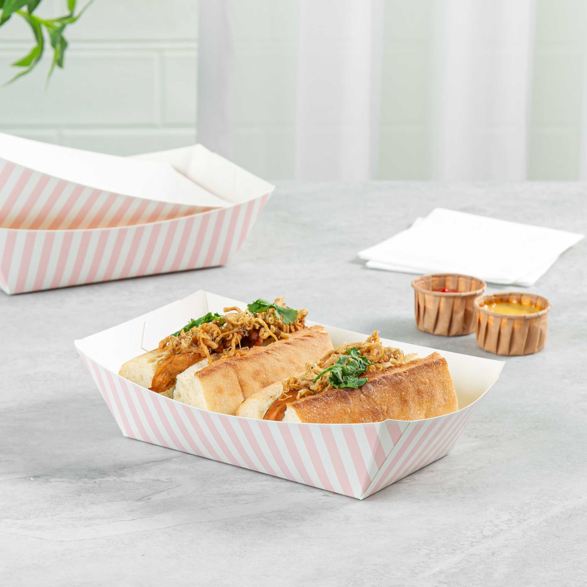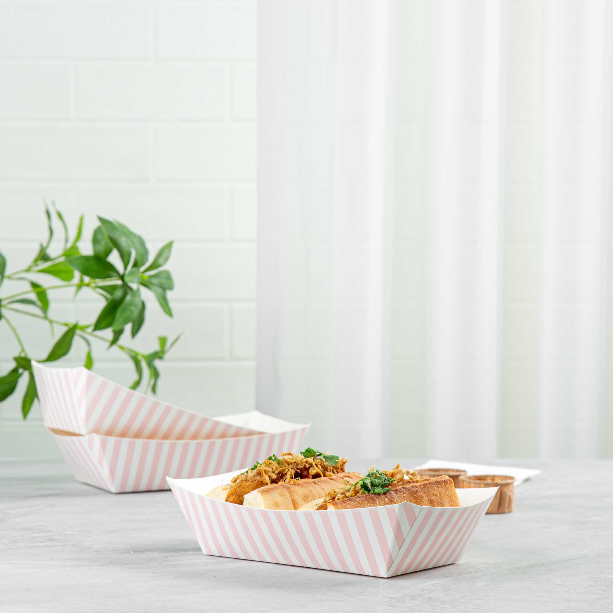2 LB PINK AND WHITE STRIPE PAPER #200 FOOD TRAY / BOAT