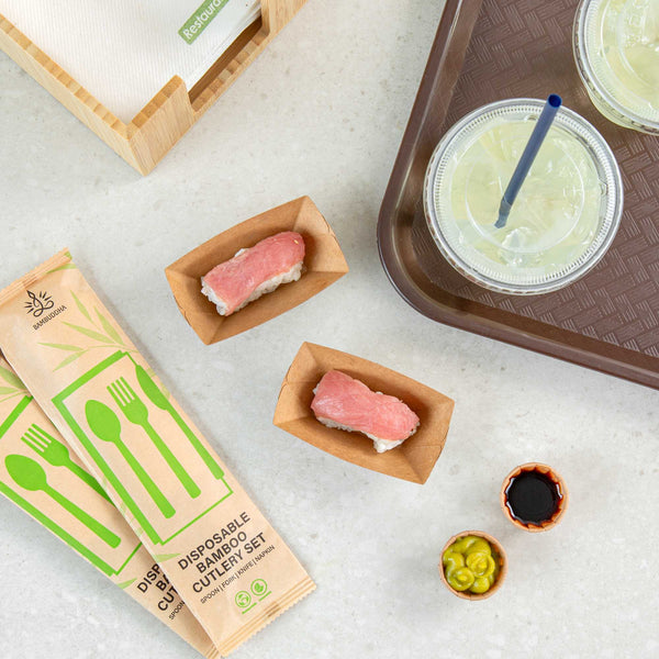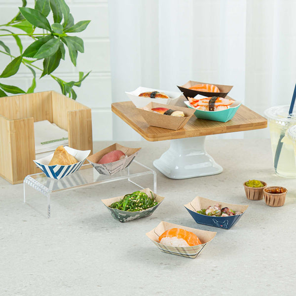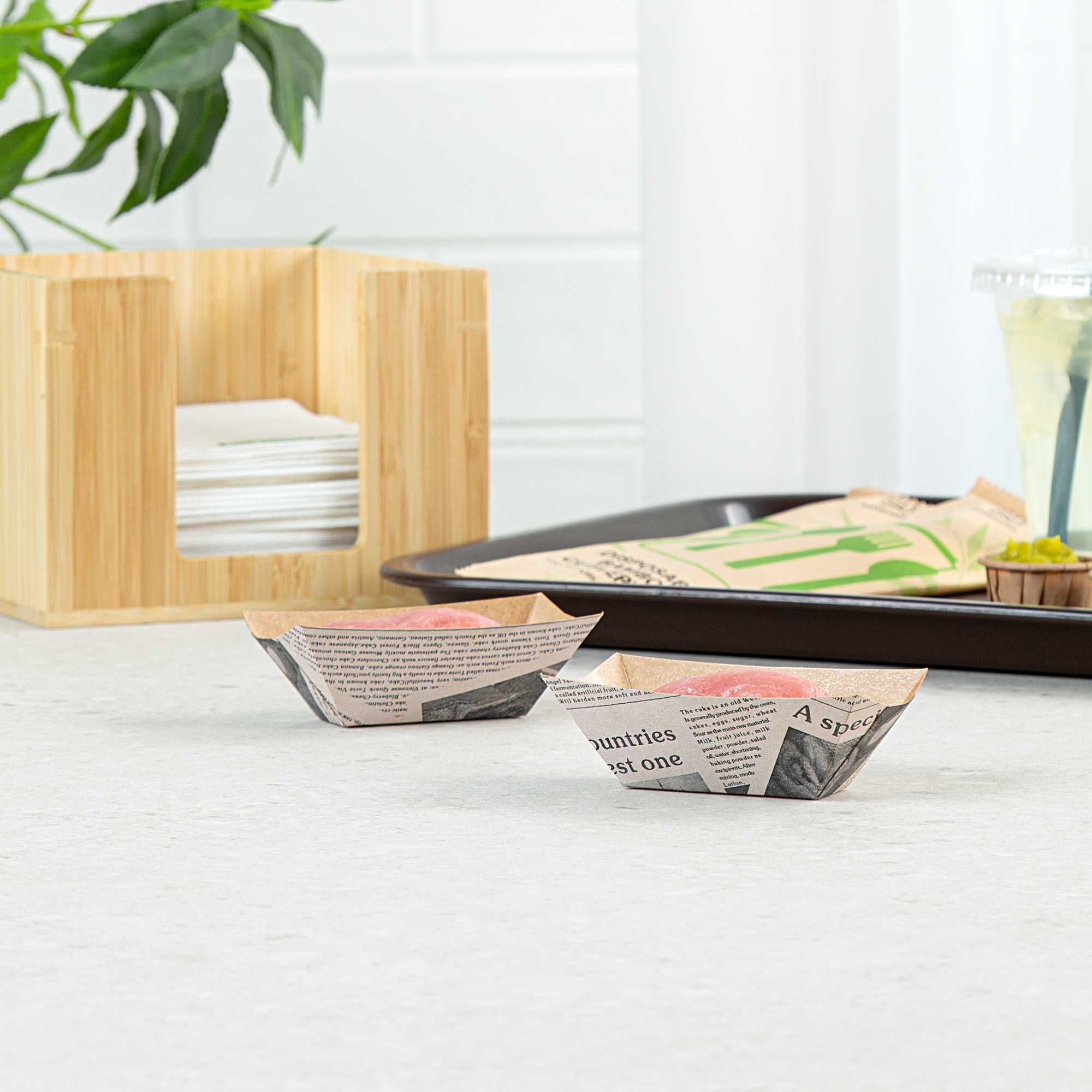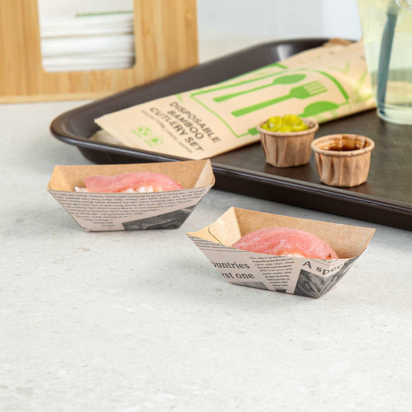 For a simple cleaning process for establishments and guests, these paper food boats are sustainably disposable. Reduce your impact on the environment!