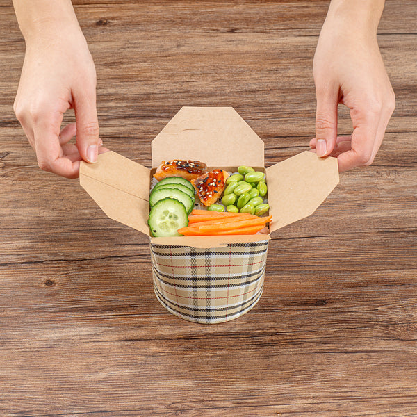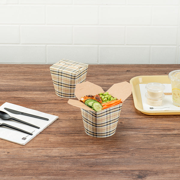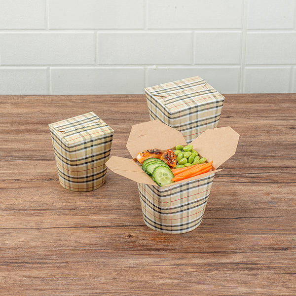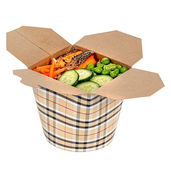 26 OZ ROUND PLAID PAPER NOODLE TAKE OUT CONTAINER