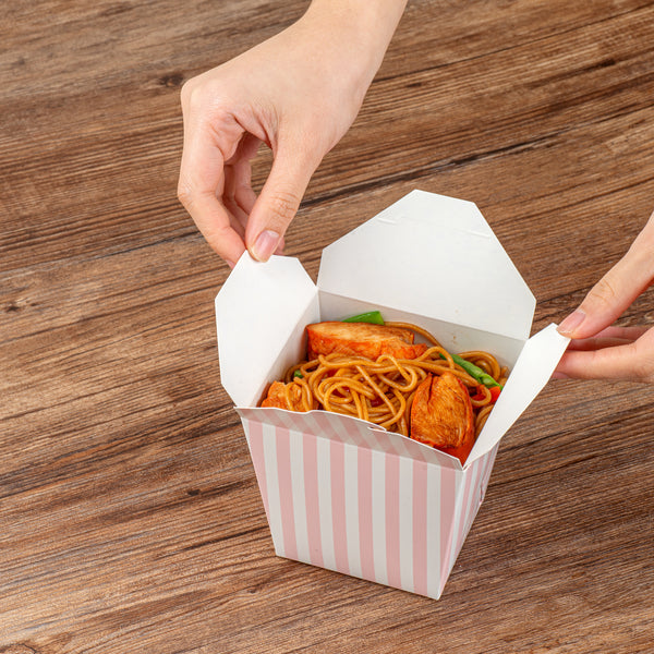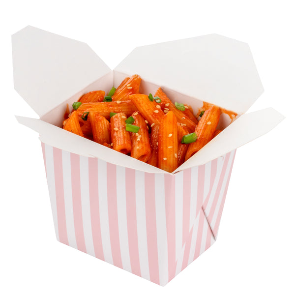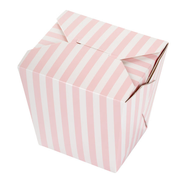 26 OZ SQUARE PINK AND WHITE STRIPE PAPER NOODLE TAKE OUT CONTAINER