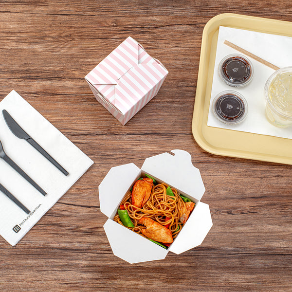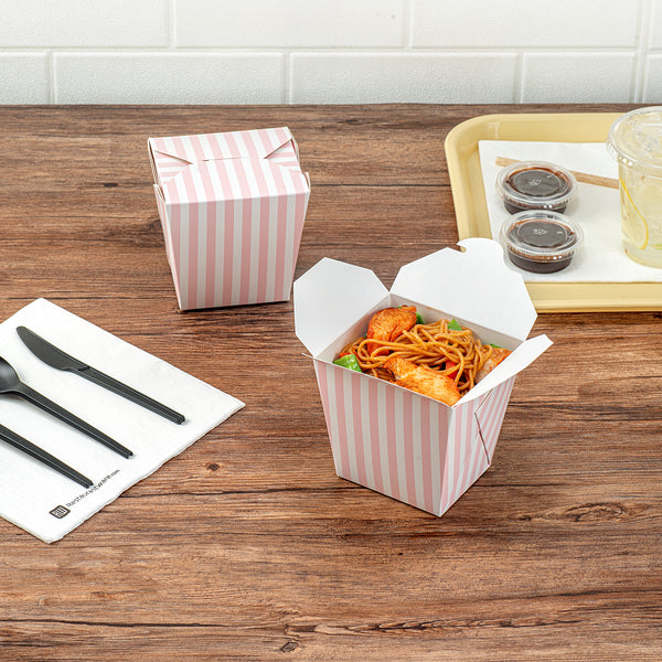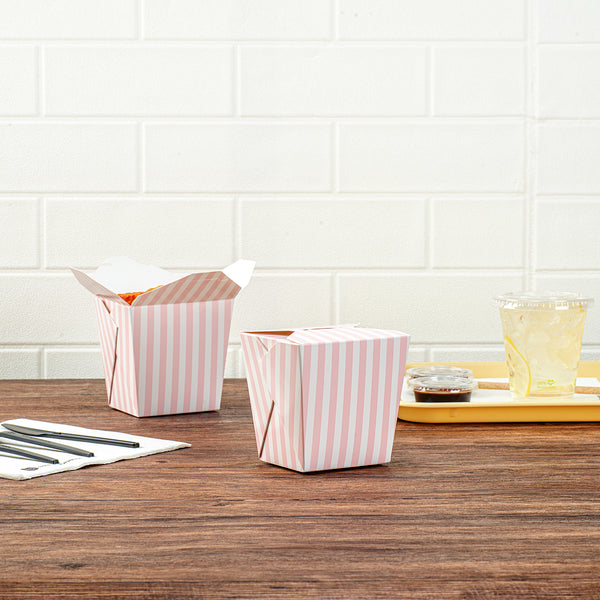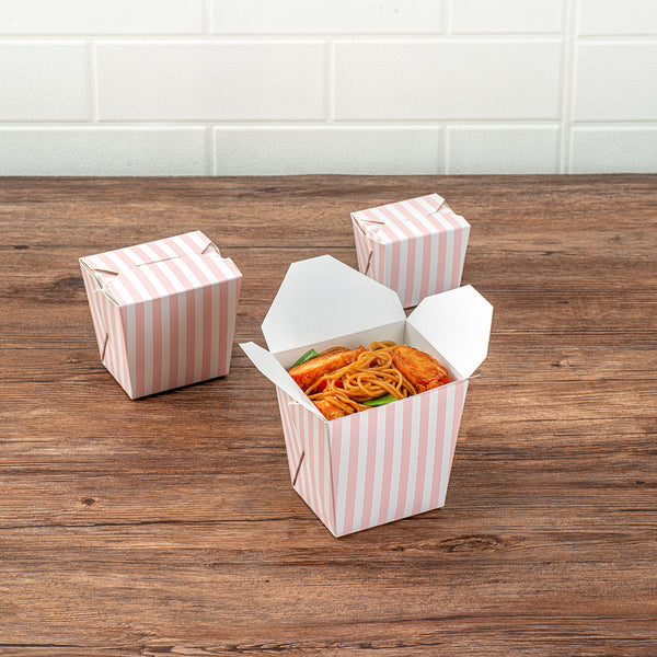 26 OZ PINK AND WHITE STRIPE PAPER SQUARE NOODLE TAKE OUT CONTAINER