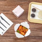 These takeaway boxes are made from thick paper and can easily hold hot and cold foods. Ideal for packing lunches for work!