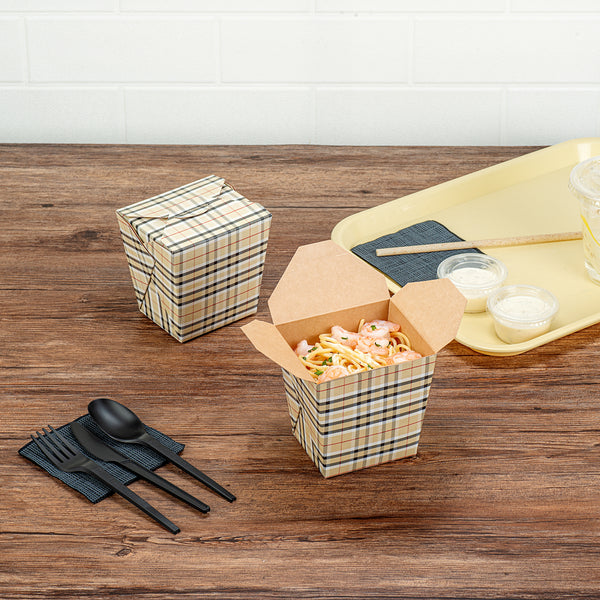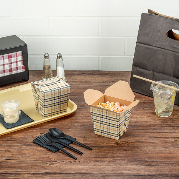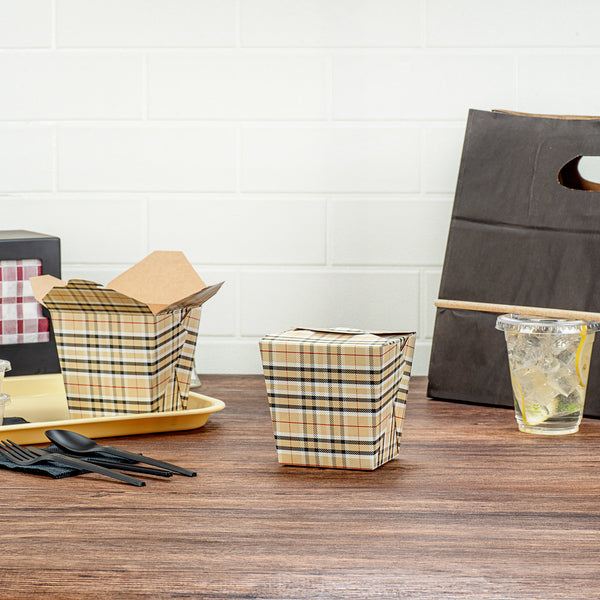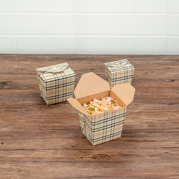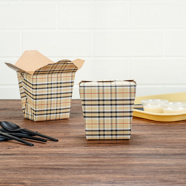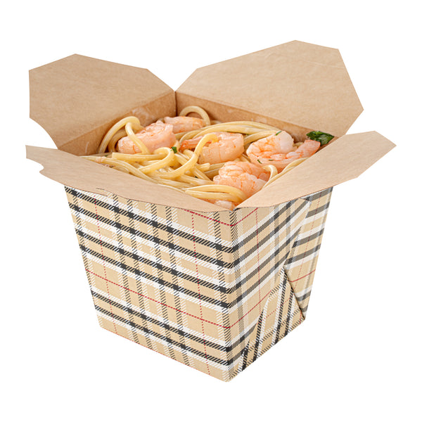 26 OZ SQUARE PLAID PAPER NOODLE TAKE OUT CONTAINER