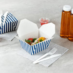 30 OZ BLUE AND WHITE STRIPE PAPER #1 BIO BOX TAKE OUT CONTAINER