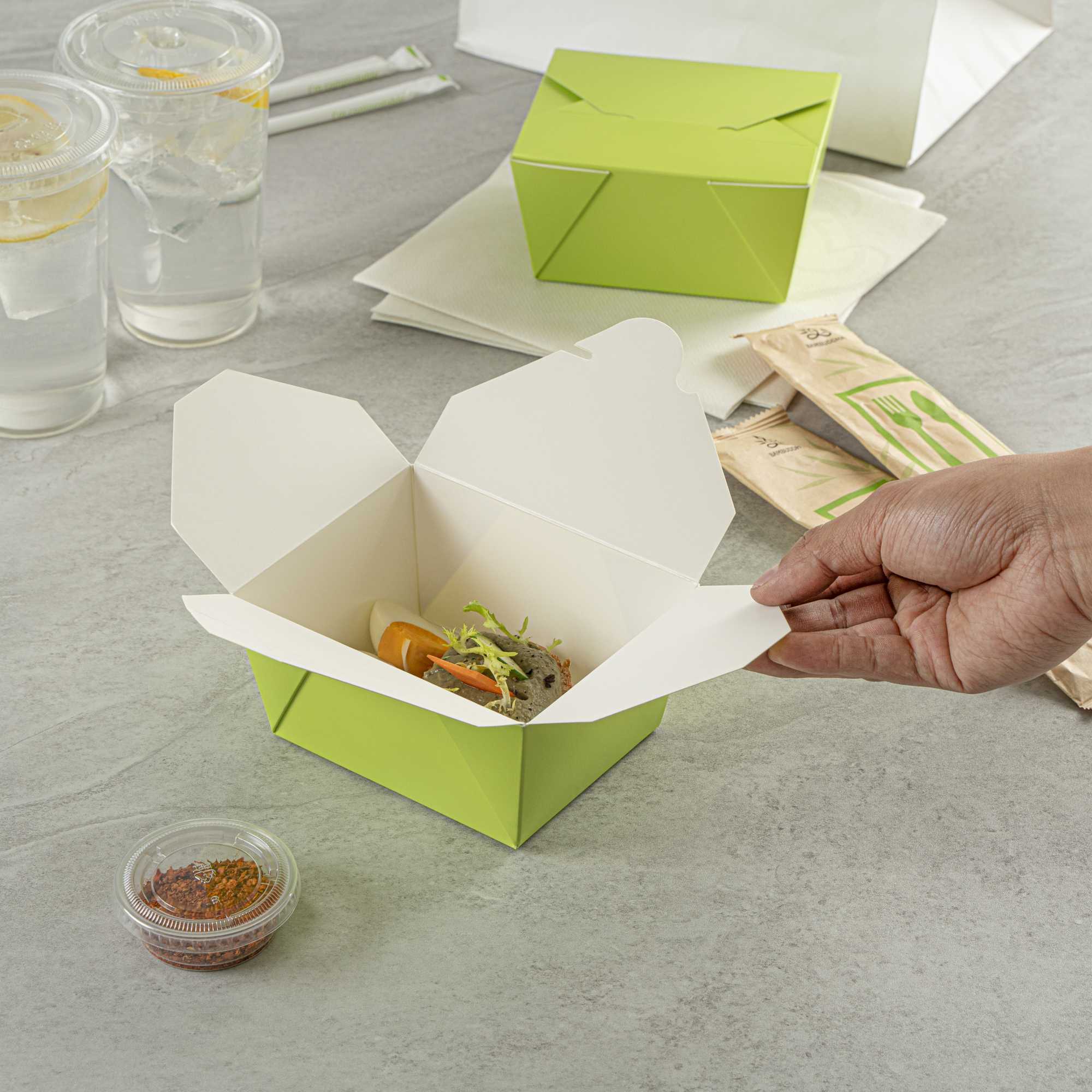 Providing an unmatched level of ease and portability, these bio boxes ensure a secure lock with their built-in tab lock, making for durable take out boxes. Their uniquely foldable design allows for easy storage, on-the-go functionality, and a minimalistic approach.