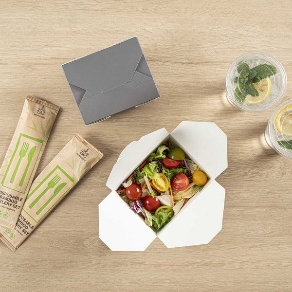 Providing an unmatched level of ease and portability, these bio boxes ensure a secure lock with their built-in tab lock, making for durable take out boxes. Their uniquely foldable design allows for easy storage, on-the-go functionality, and a minimalistic approach.