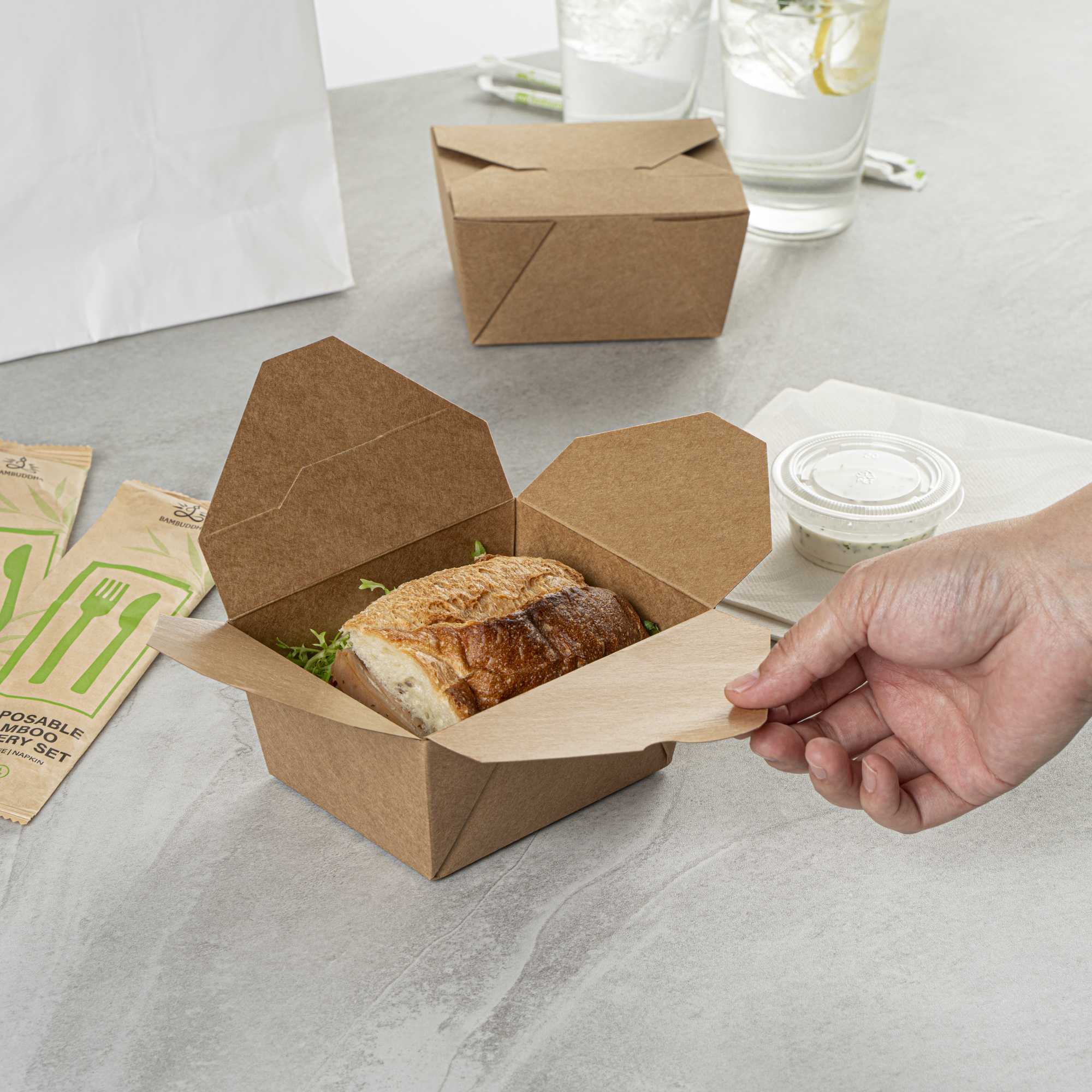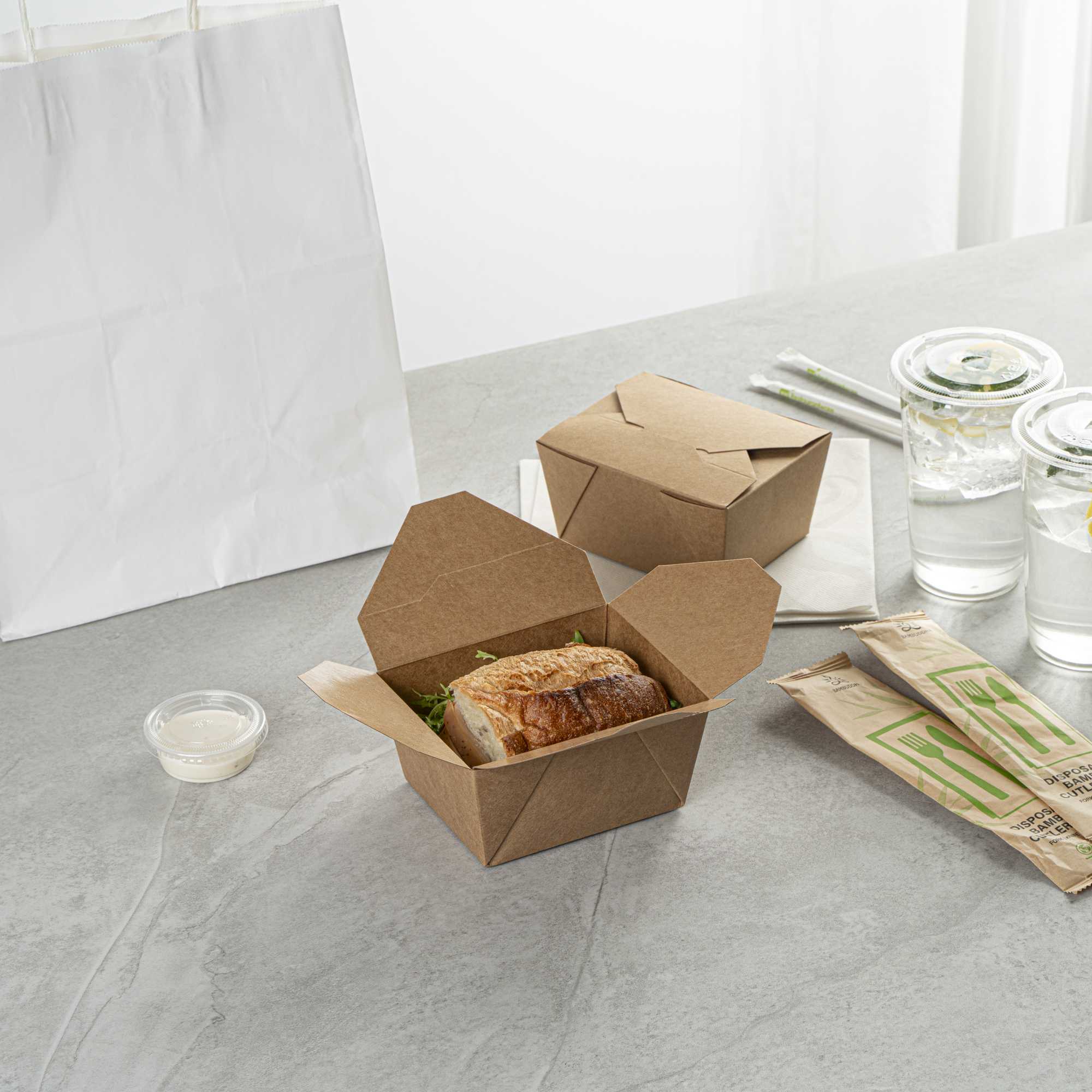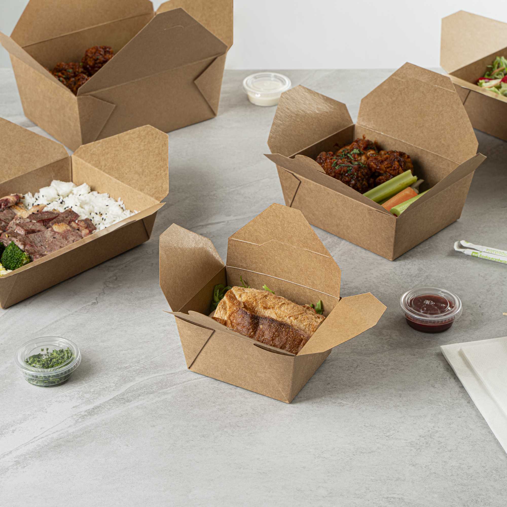 No matter the size of your dish, our disposable food boxes are available in different capacities to accommodate any meal. Choose from our soup, noodle, salad, or rectangle containers to easily pack and take food anywhere.