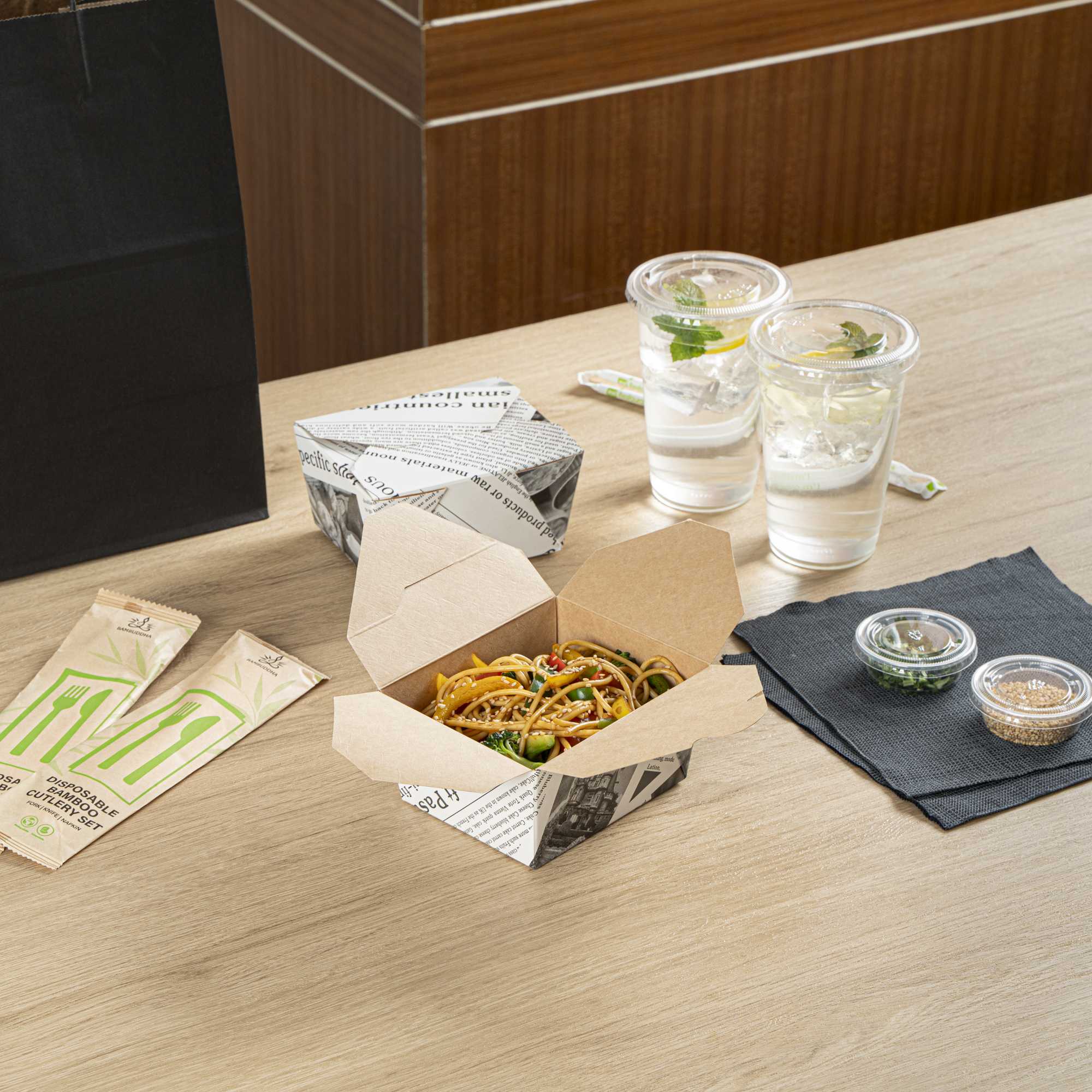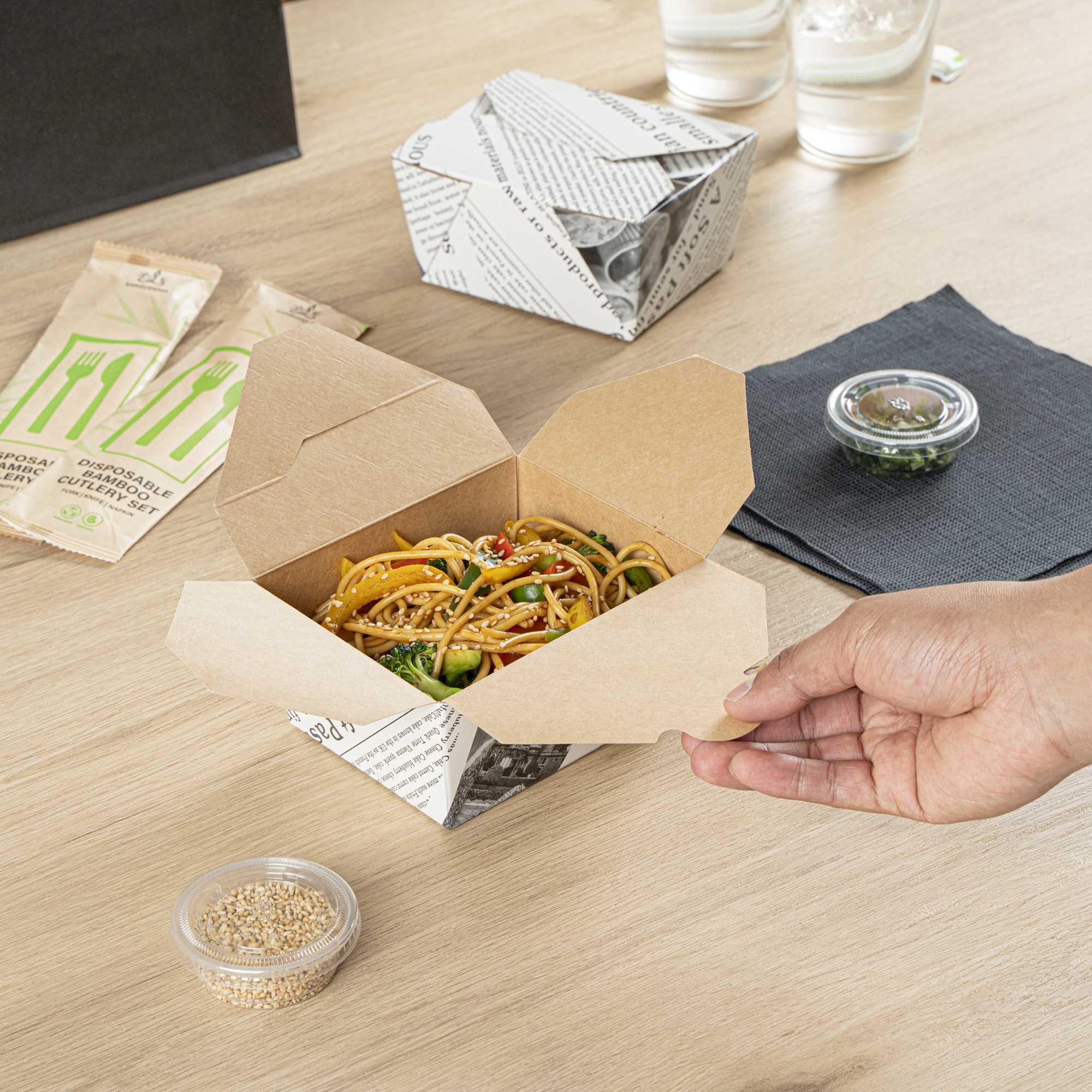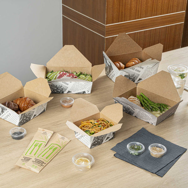 No matter the size of your dish, our disposable food boxes are available in different capacities to accommodate any meal. Choose from our soup, noodle, salad, or rectangle containers to easily pack and take food anywhere.