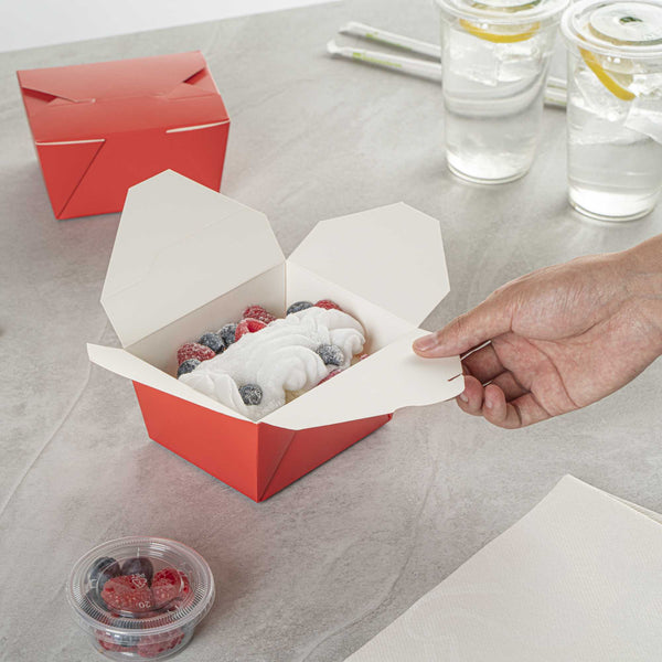 No matter the size of your dish, our disposable food boxes are available in different capacities to accommodate any meal. Choose from our soup, noodle, salad, or rectangle containers to easily pack and take food anywhere.