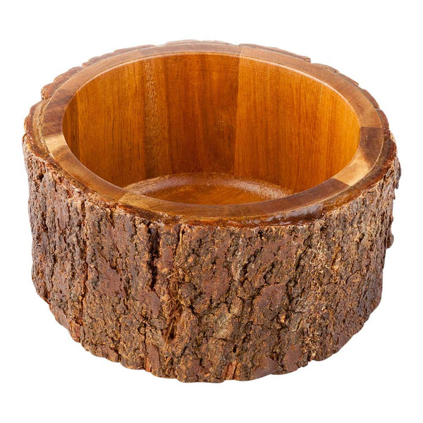 Bring a rustic touch to your serveware with our Bio Tek Medium Round Acacia Wood Serving Bowls! Crafted from acacia, a fast-growing and sustainable resource, our Bio Tek wooden serving bowls are naturally long-lasting, durable, and nature-friendly. Each of these acacia wood bowls is 6 inches wide and 3 inches high -- a perfect size for serving salads, snacks, appetizers, desserts, and more. With their natural bark exterior, these natural edge wood bowls look gorgeous as serving bowls or incorporated into earthy tablescapes or elegant centerpieces. We've finished these wooden serving bowls with an attractive varnish to enhance their natural beauty and the graining of their acacia wood construction! Food-safe and easy to clean, these impressive 6-inch serving bowls are available in a 1-count box.