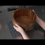 Bio Tek 30 oz Round Natural Acacia Serving Bowl - Varnished, Bark Edges - 6