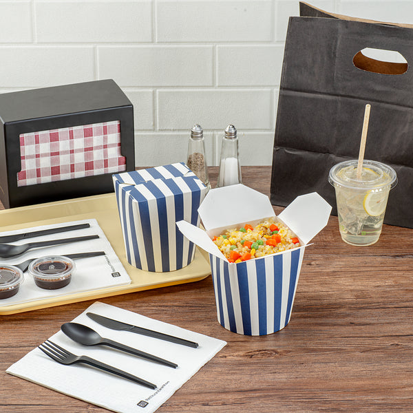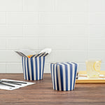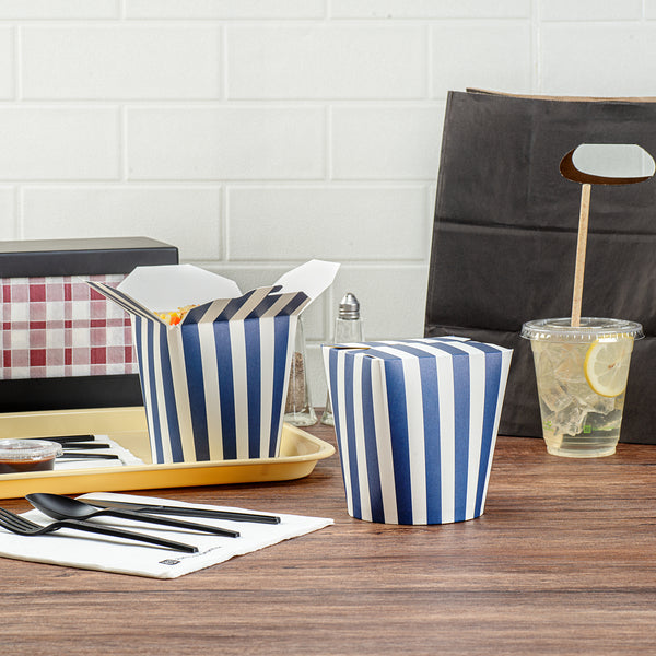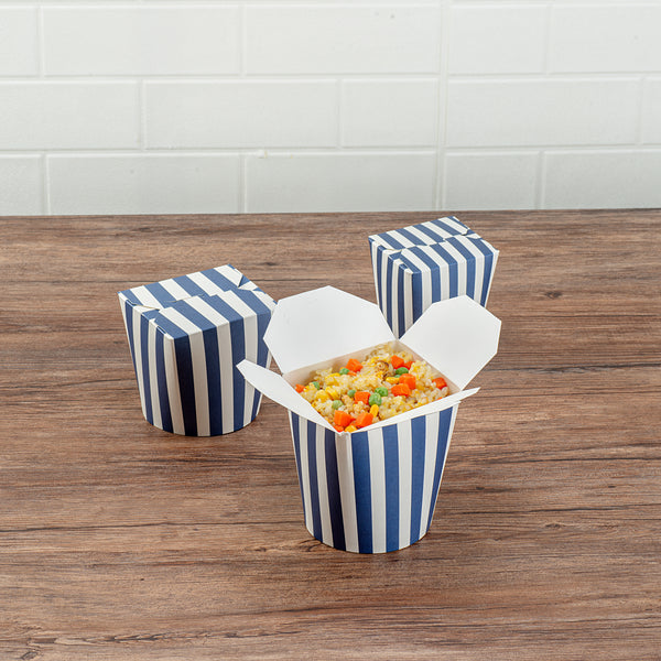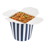 32 OZ ROUND BLUE AND WHITE STRIPE PAPER NOODLE TAKE OUT CONTAINER