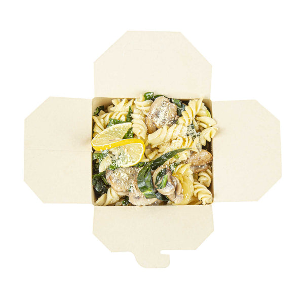 These takeaway boxes are made from thick paper and can easily hold hot and cold foods. Ideal for packing lunches for work!