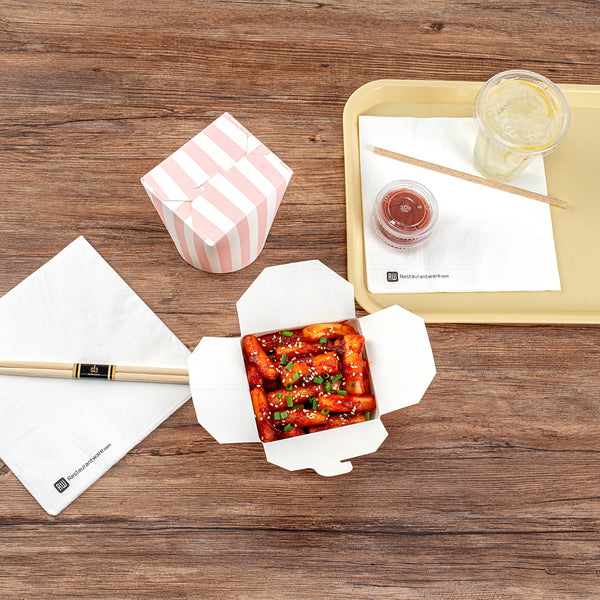 These takeaway boxes are made from thick paper and can easily hold hot and cold foods. Ideal for packing lunches for work!