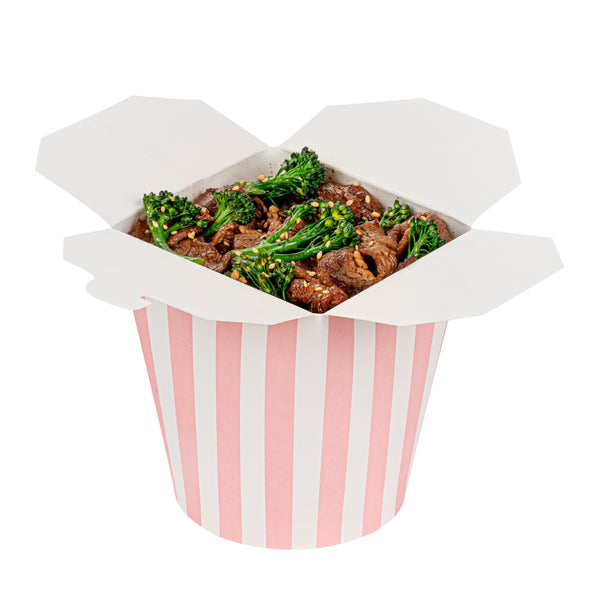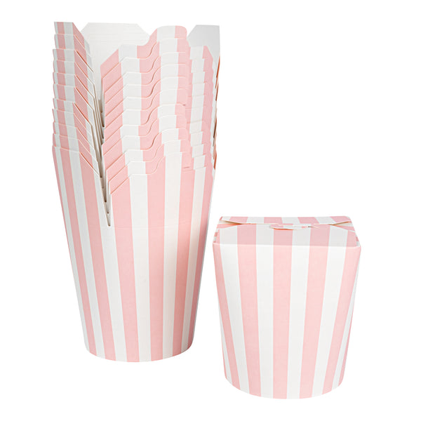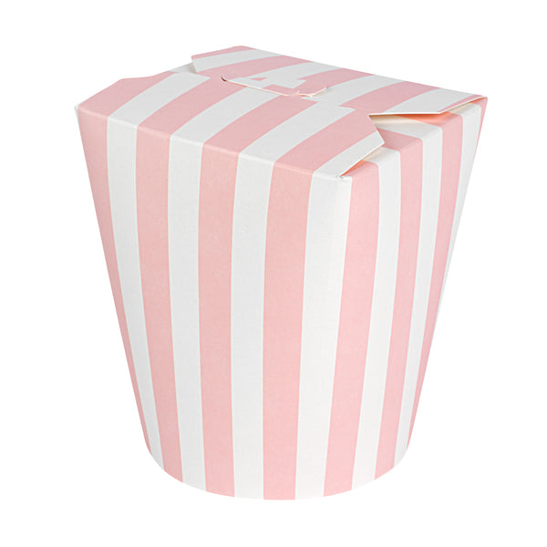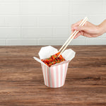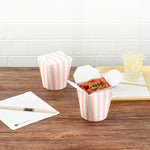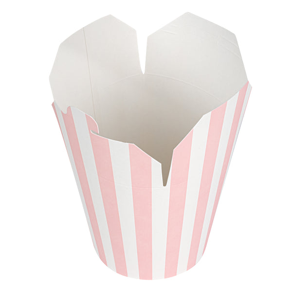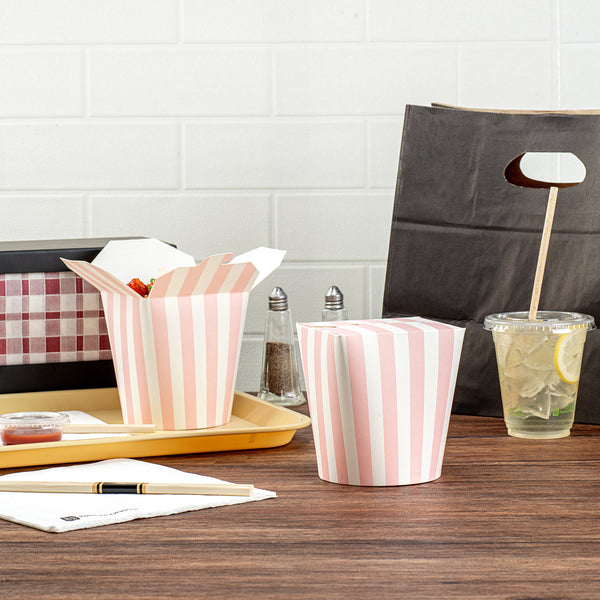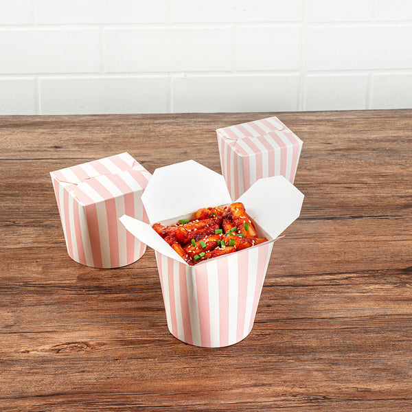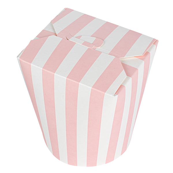 32 OZ ROUND PINK AND WHITE STRIPE PAPER NOODLE TAKE OUT CONTAINER